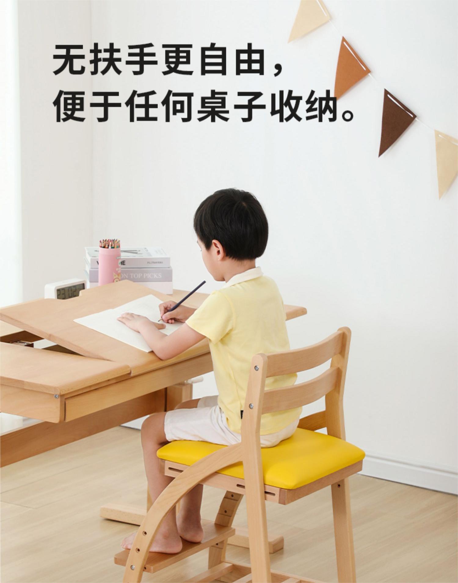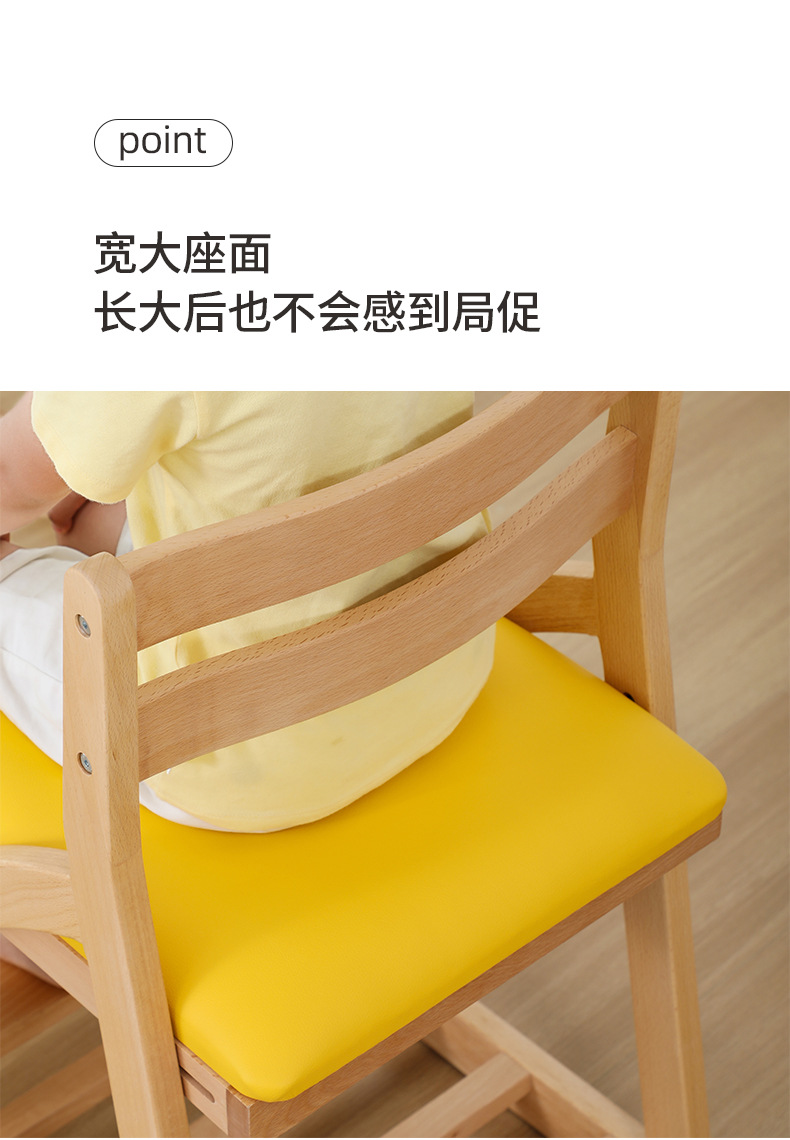 新日本实木学习椅实木座椅宝宝餐椅家用书桌成长椅儿童可调节椅子