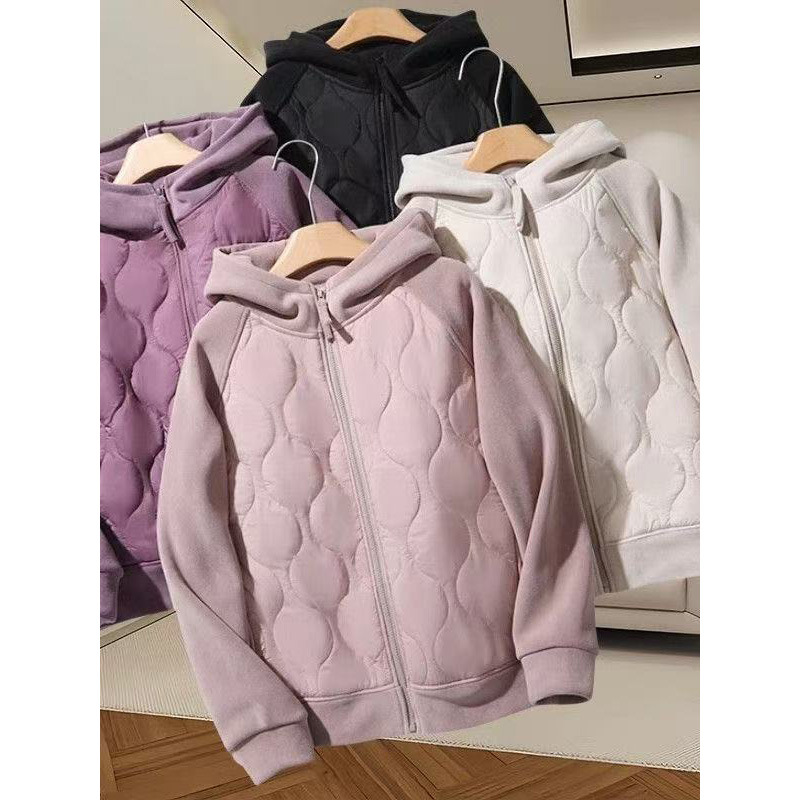 2025秋冬新款女士百搭显瘦保暖防风奥粒绒卫衣撞色连帽加厚外套潮