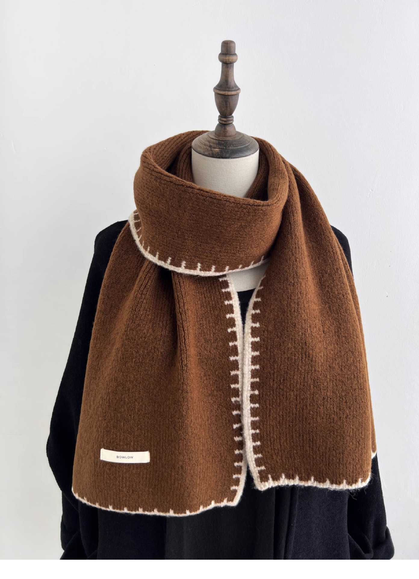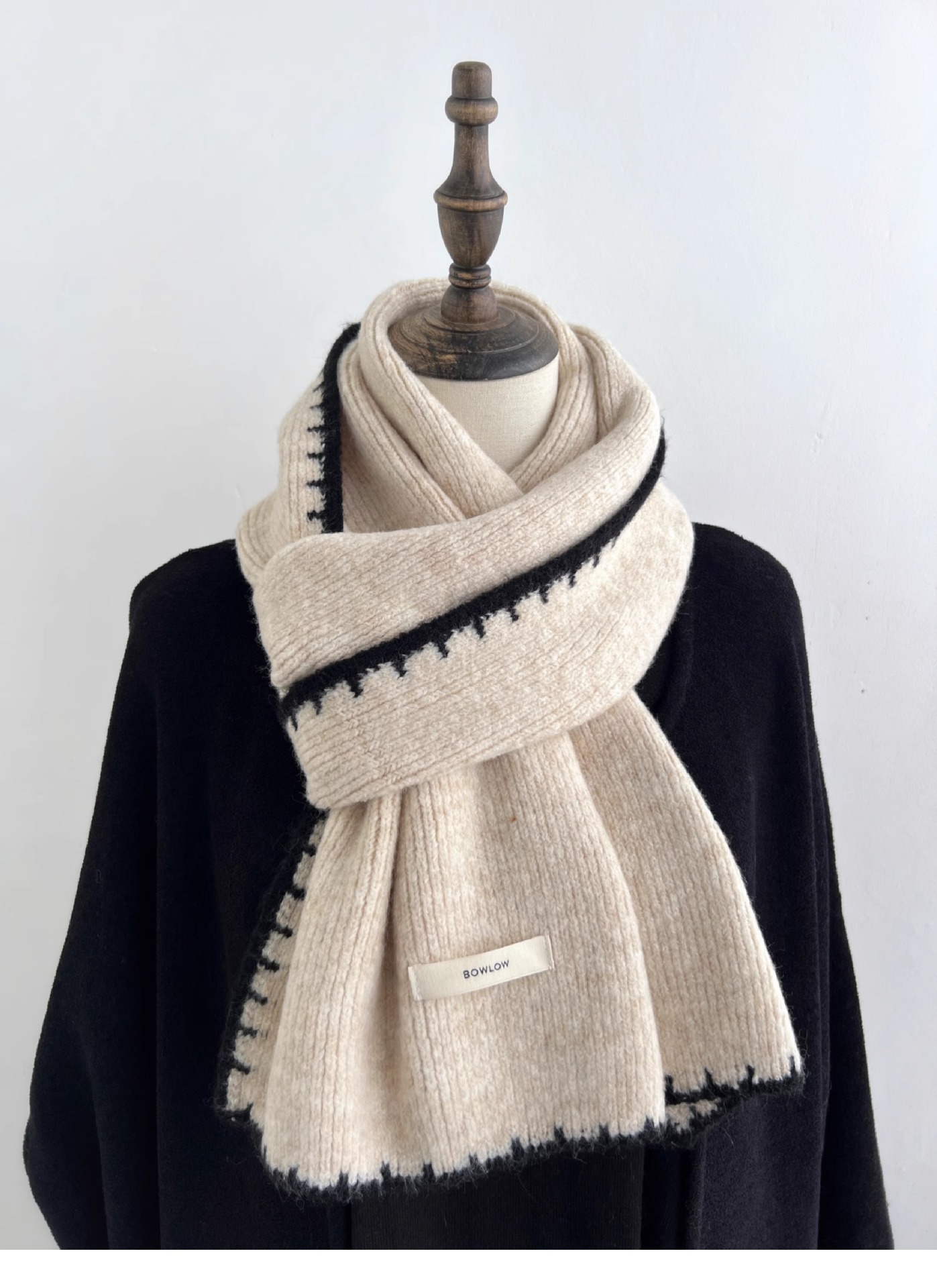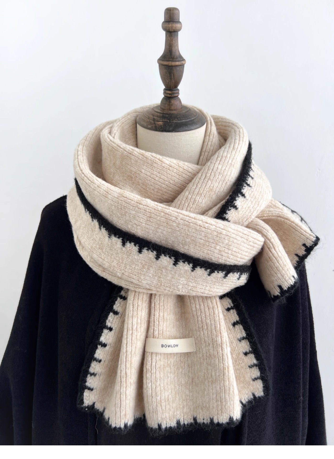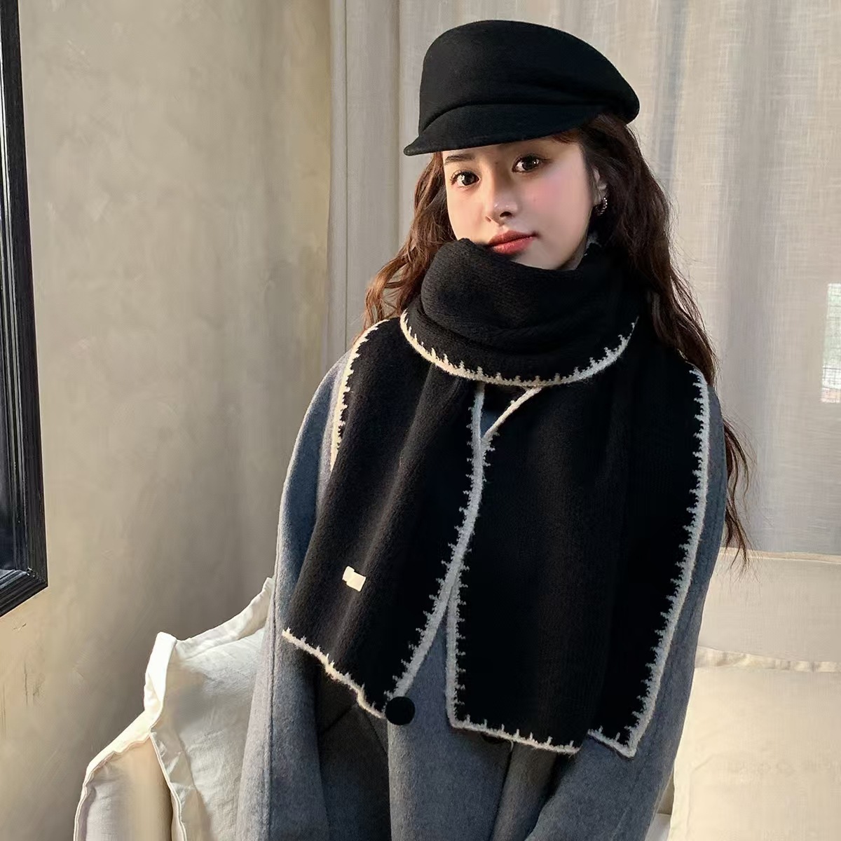 ins风锁边高级感针织毛线米白色围巾学生男女情侣款冬季保暖围脖