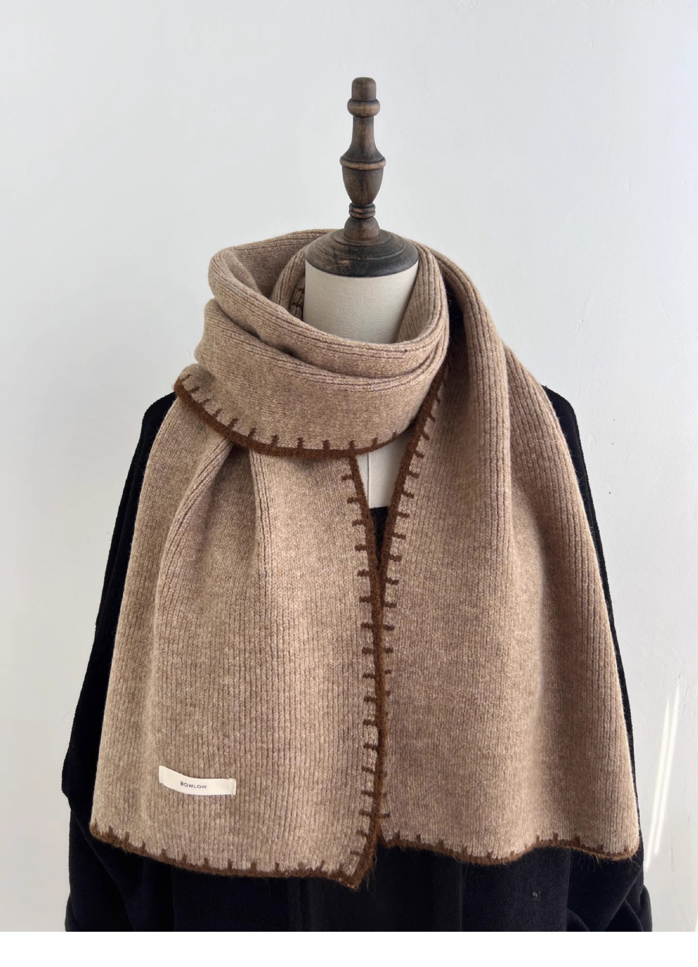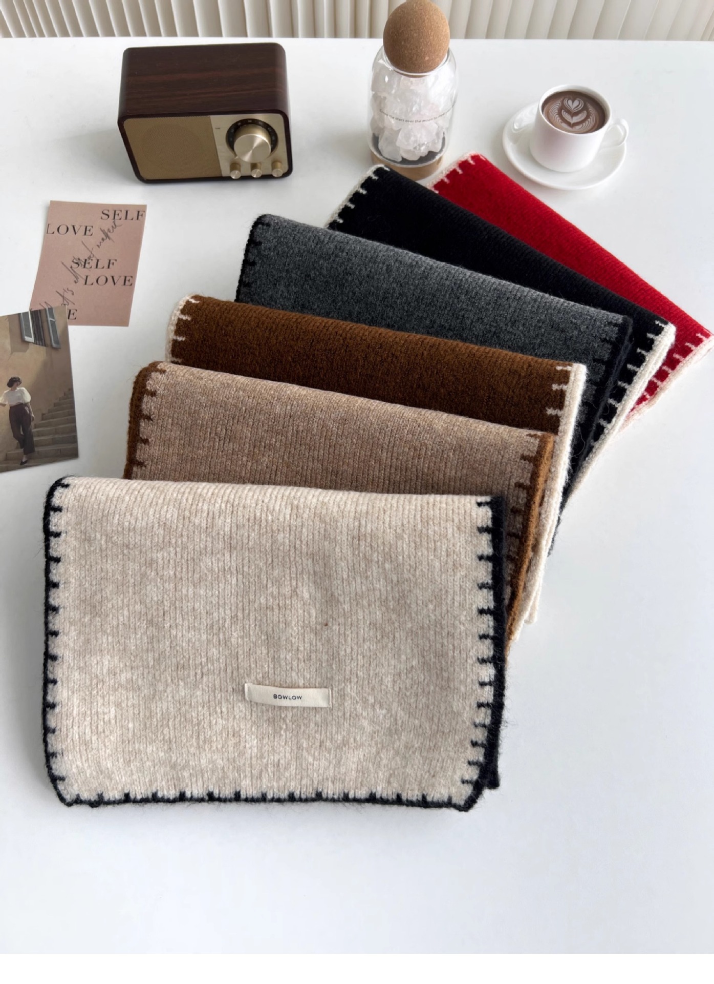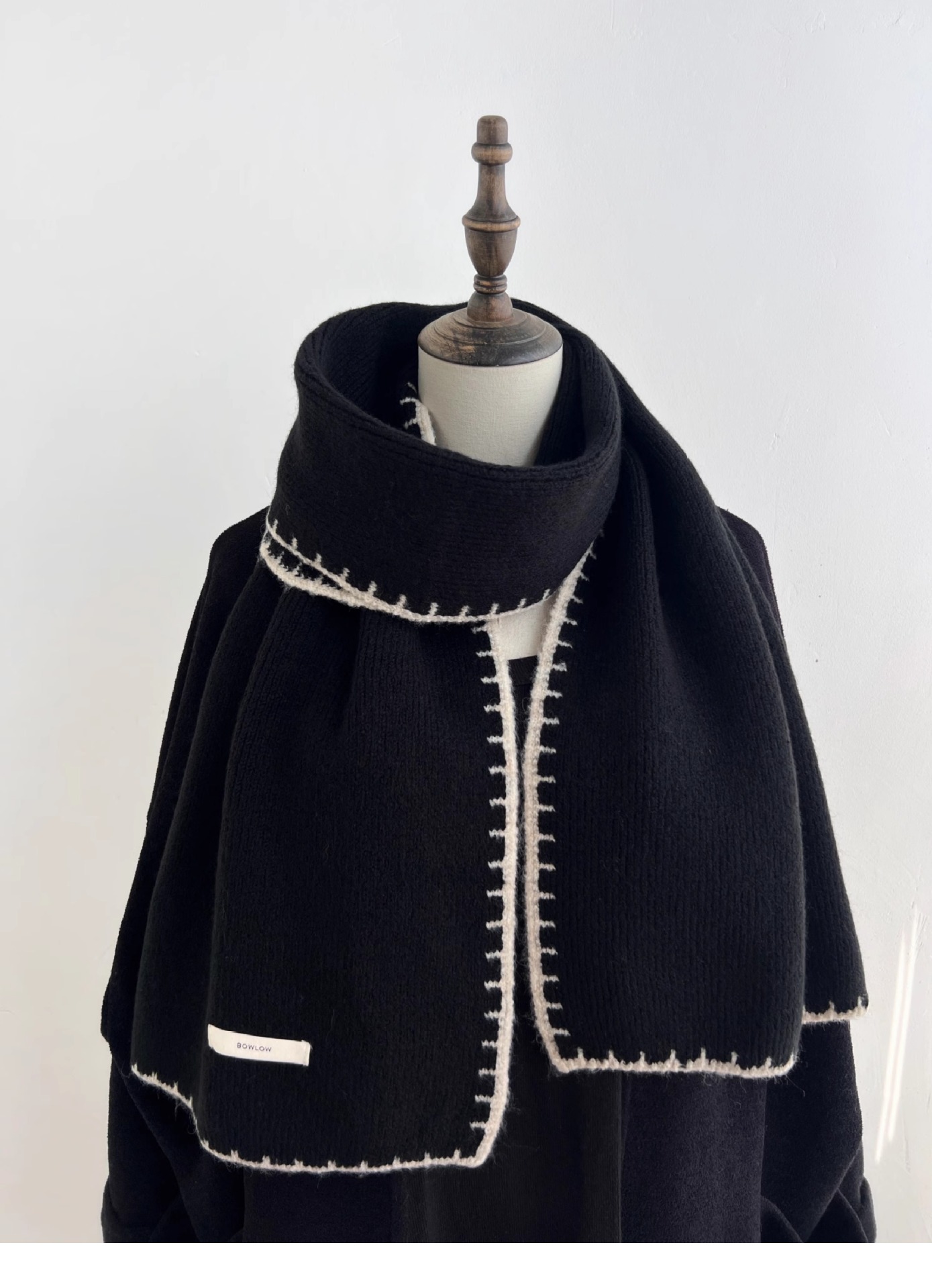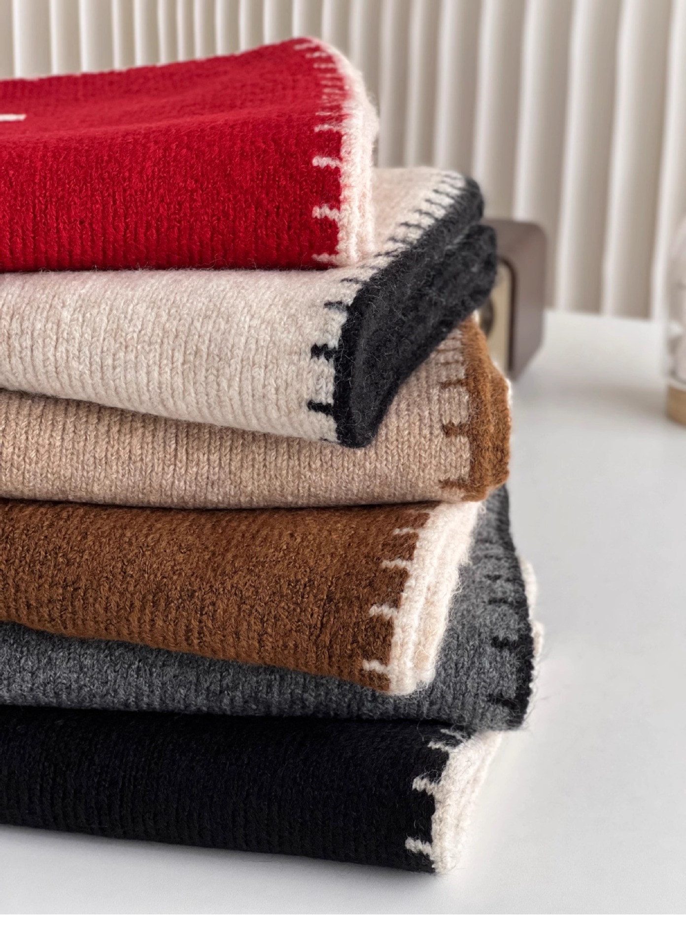 ins风锁边高级感针织毛线米白色围巾学生男女情侣款冬季保暖围脖