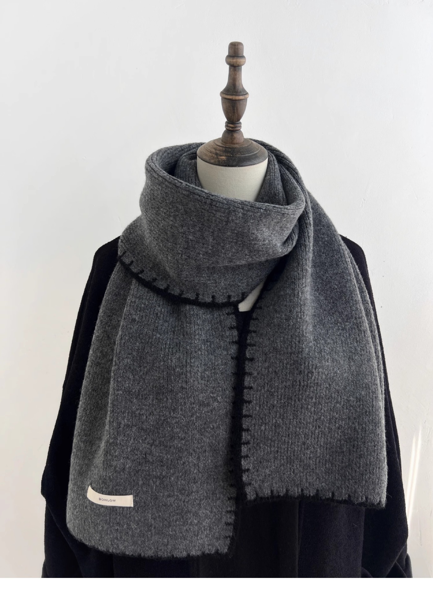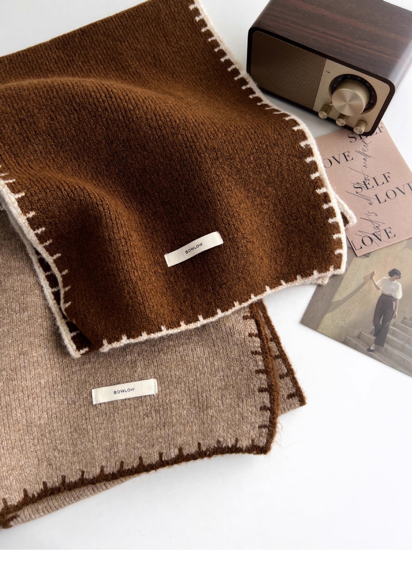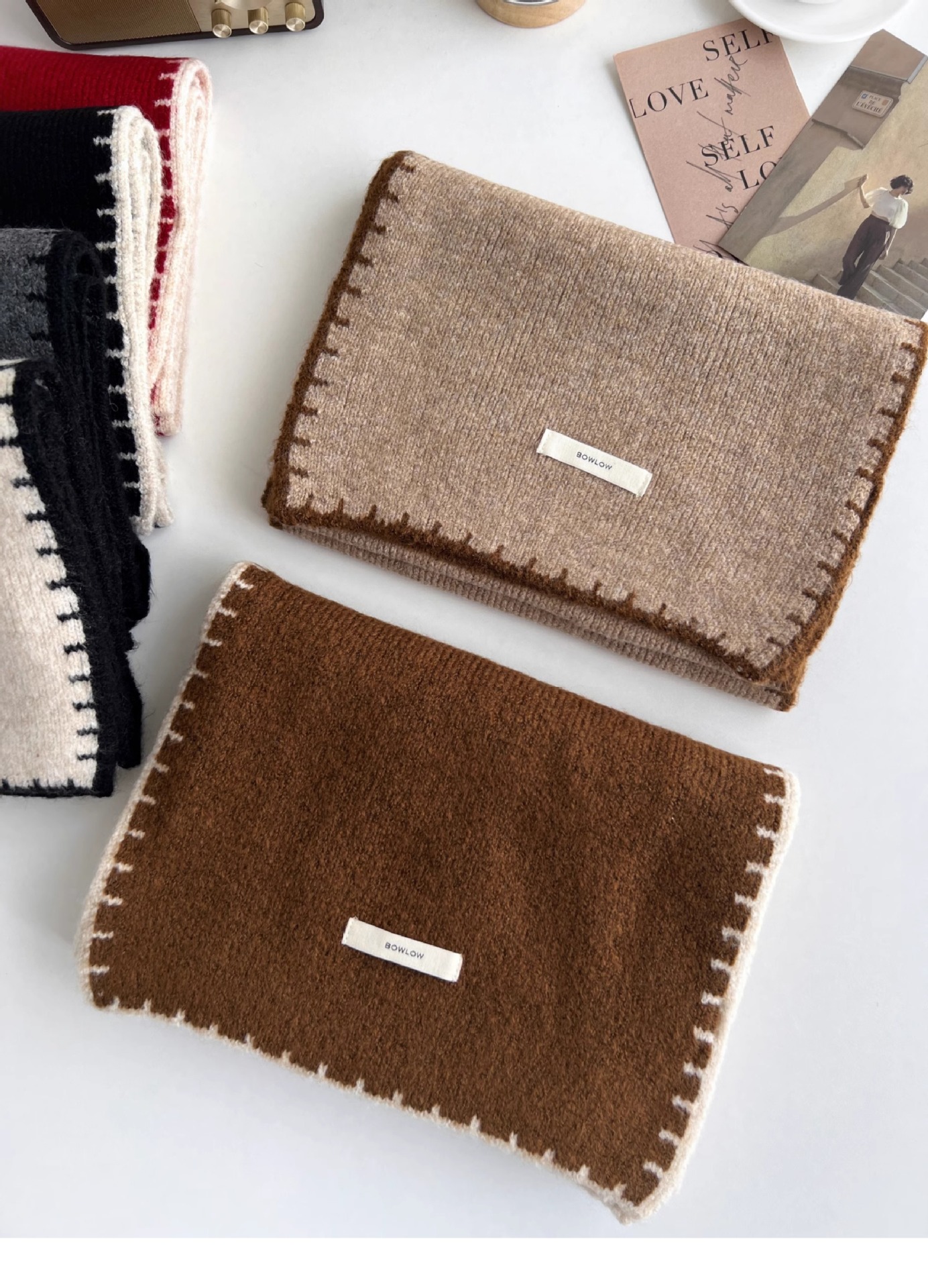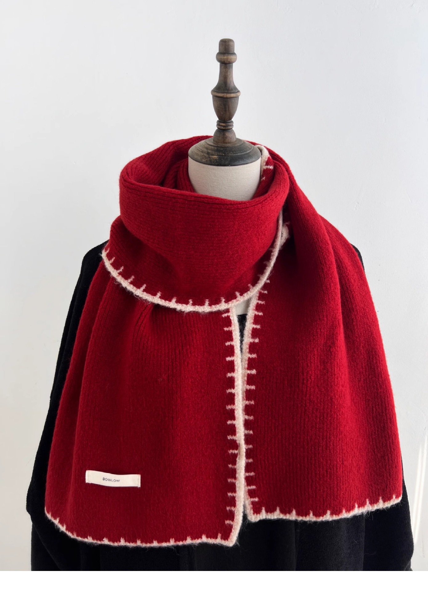 ins风锁边高级感针织毛线米白色围巾学生男女情侣款冬季保暖围脖