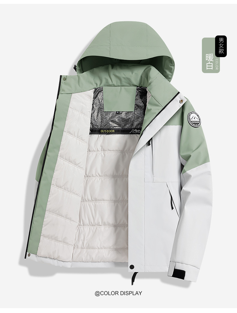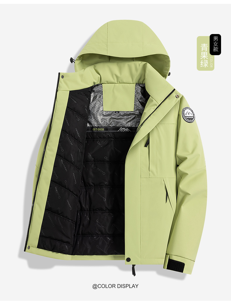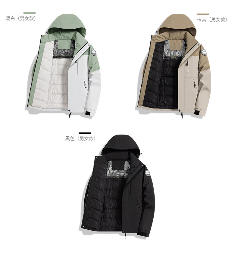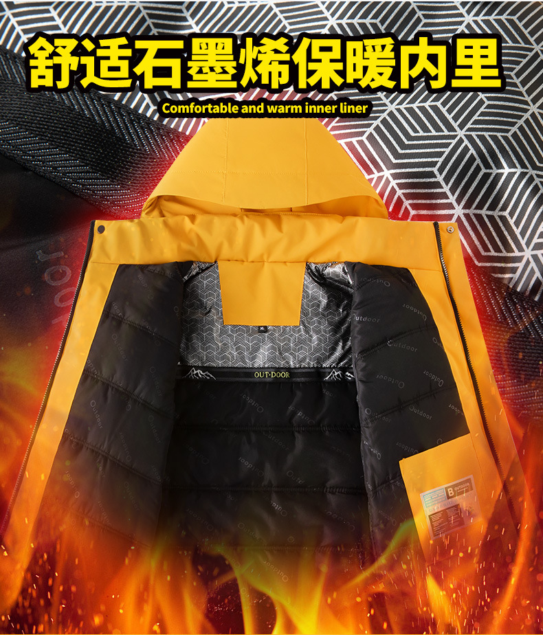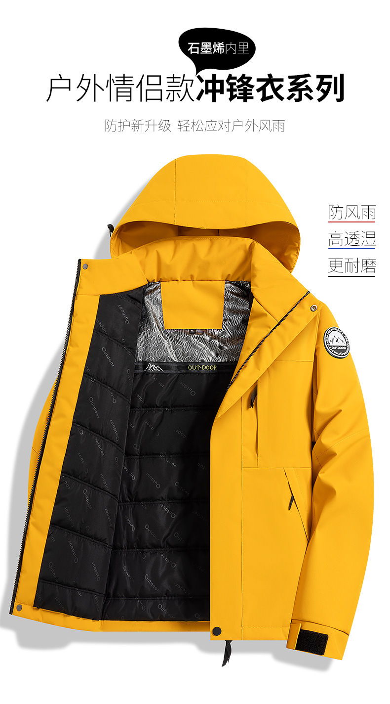 2025新款户外冲锋衣男女防风保暖棉衣可拆卸帽子石墨烯加热内里
