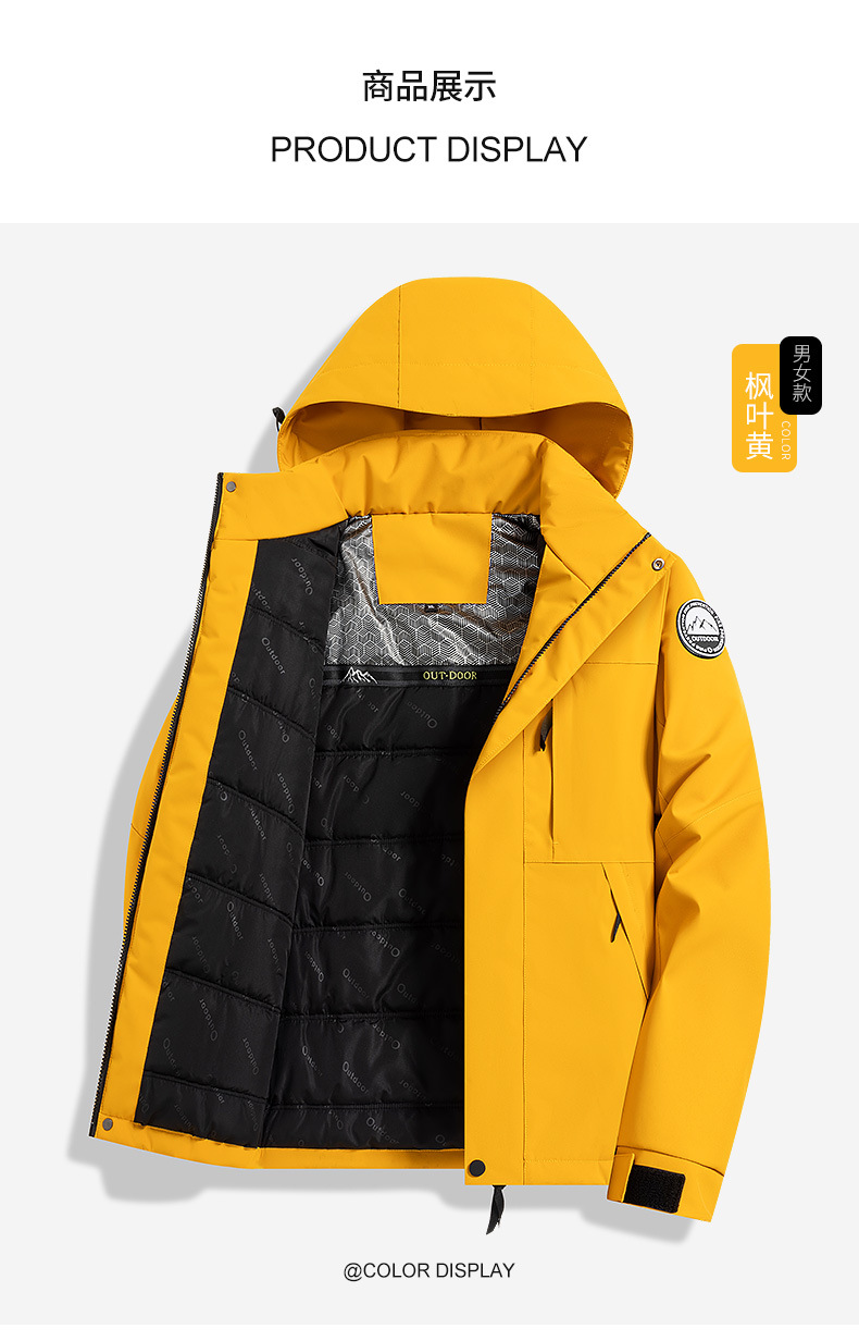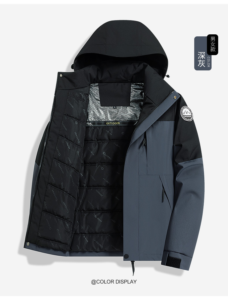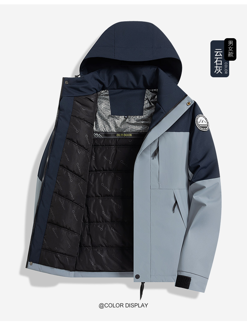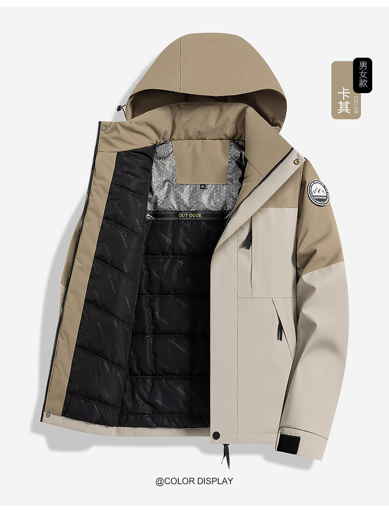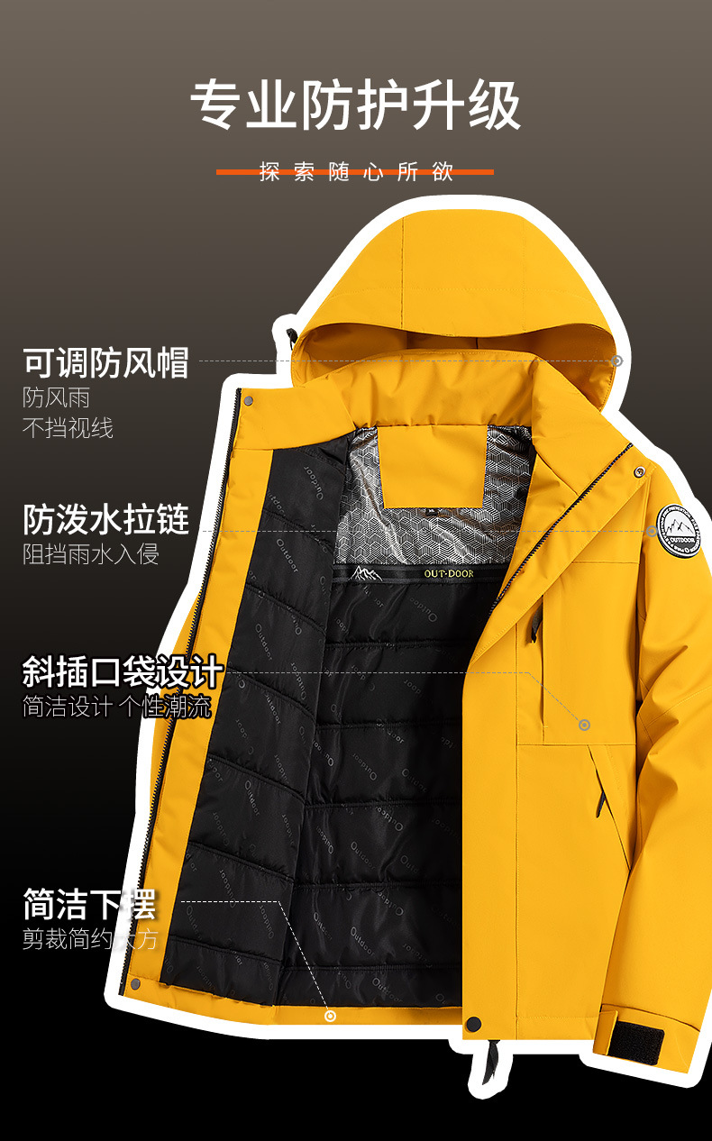 2025新款户外冲锋衣男女防风保暖棉衣可拆卸帽子石墨烯加热内里