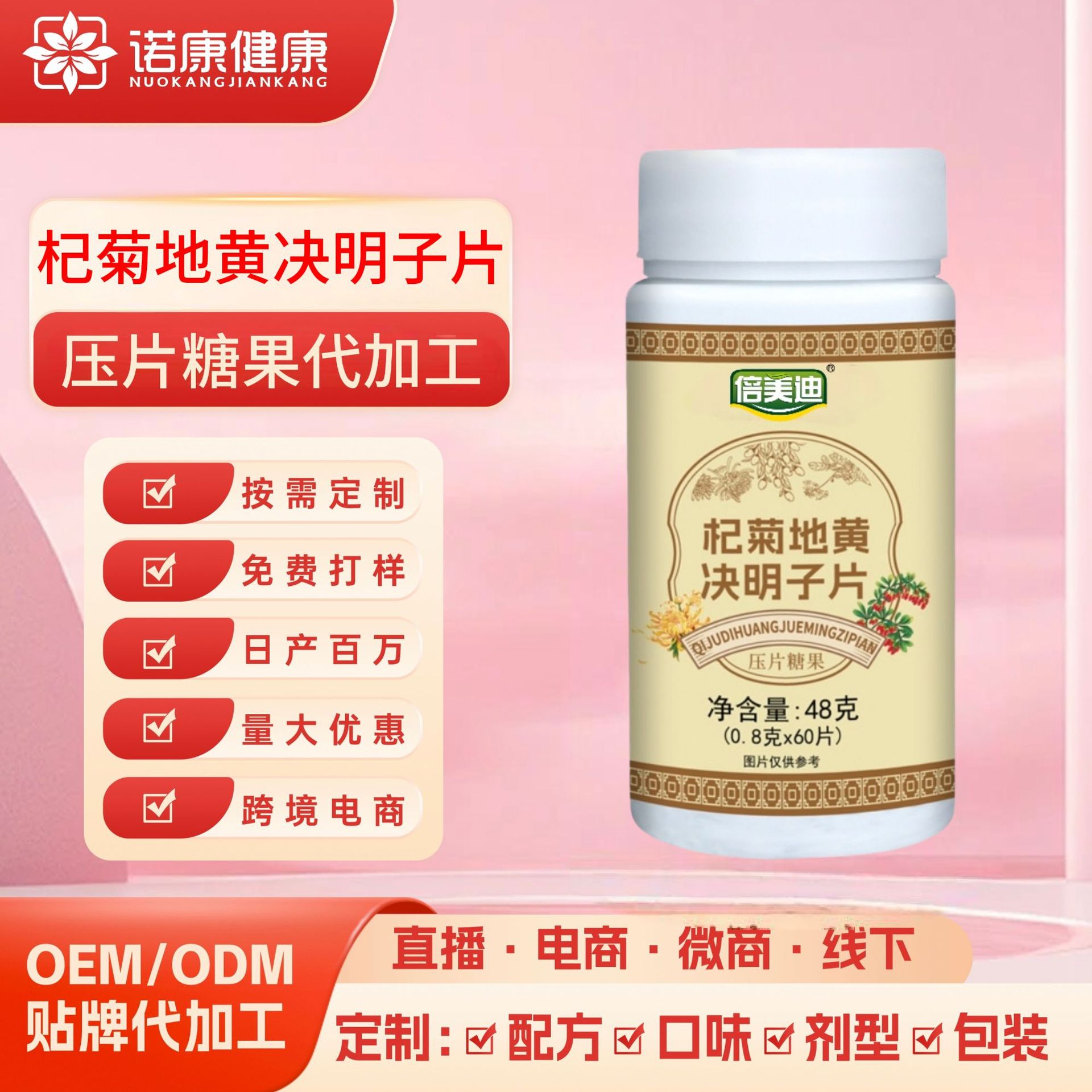 菊、枸杞、決明子の錠剤キャンディーOEM、カスタムメイド、スイカズラ、茯苓、オオアザミの錠剤加工