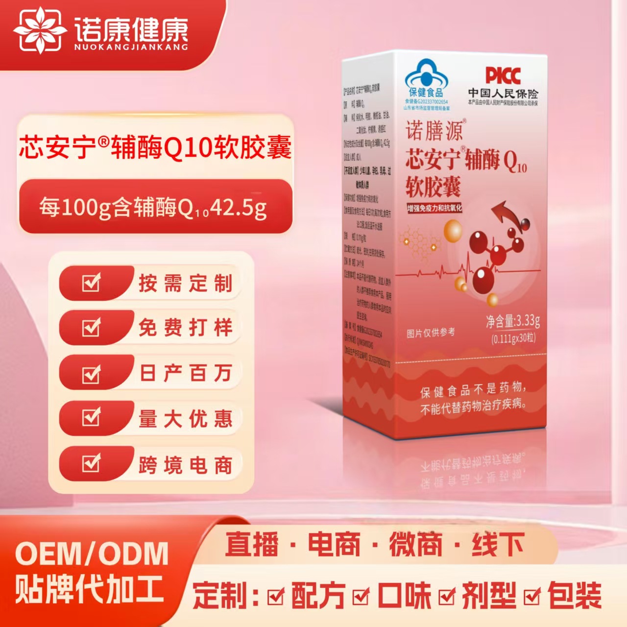 辅酶Q10软胶囊oem贴牌定制辅酶q10胶囊60粒批发蓝帽保健品代加工