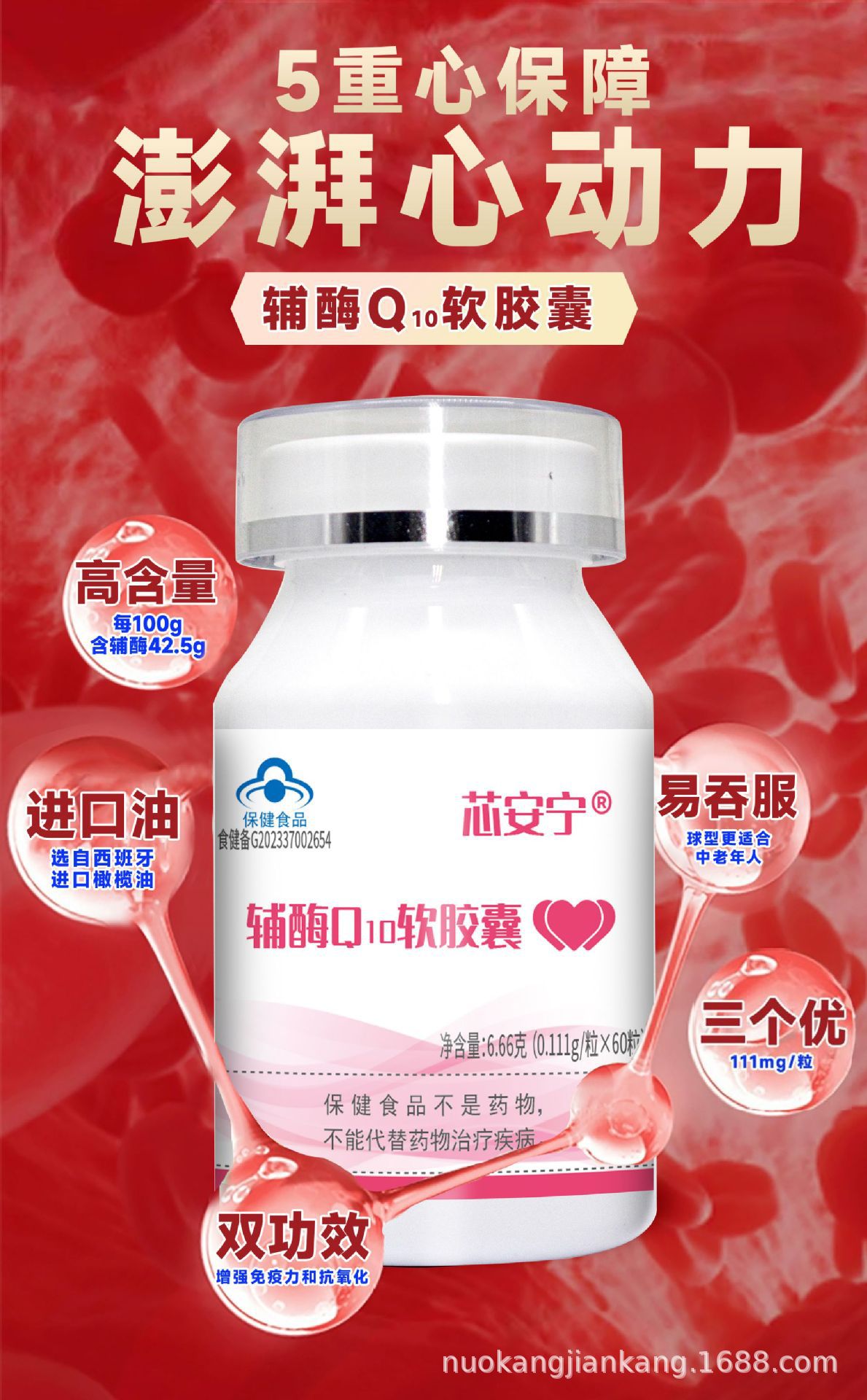 亨博士辅酶Q10高含量健康增强免疫力60/粒蓝帽保健品工厂批发代发