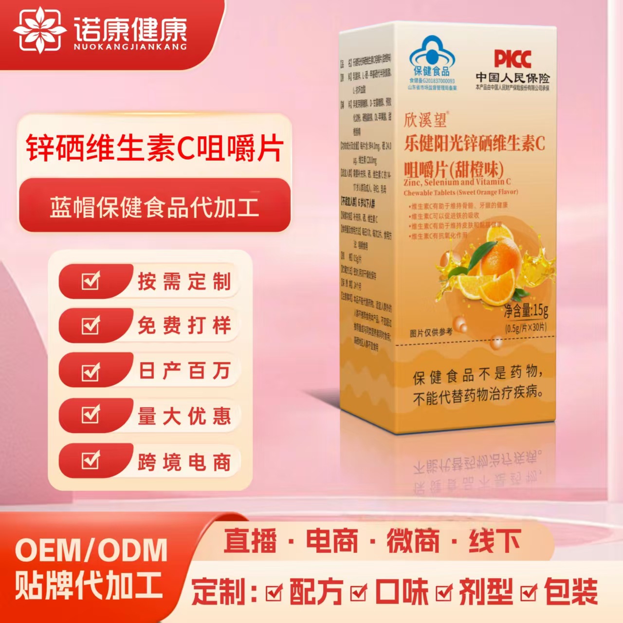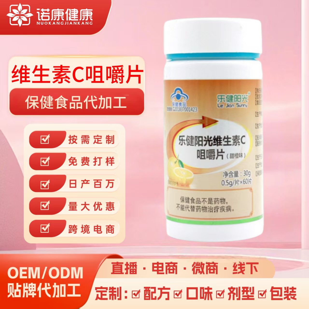 甘いオレンジ味のビタミンC錠OEMブランドカスタマイズ、VCチュアブル錠、青帽子ビタミンC錠、健康食品のOEM加工