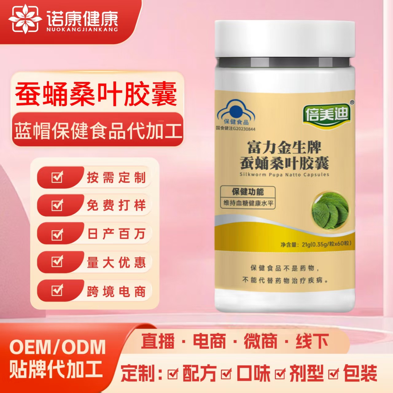 富麗金生ブランド蚕蛹桑葉カプセルOEMカスタム、血糖値維持用ハードカプセル、越境加工