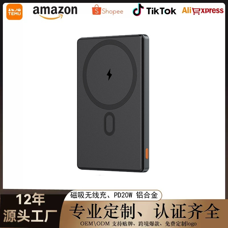 クロスボーダー超薄型アルミニウム合金磁気充電宝無線充電モバイル電源軽薄携帯型モバイル電源PD20W