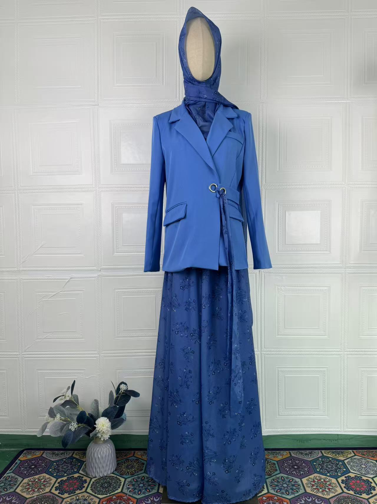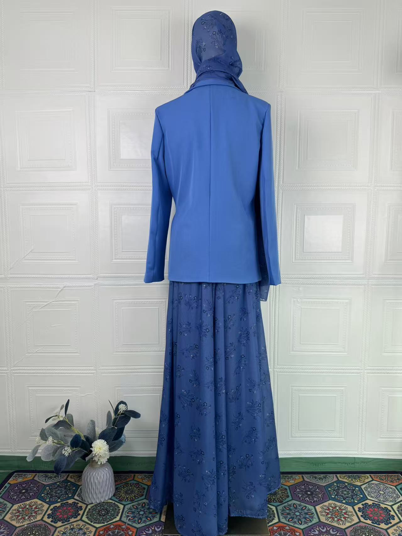 2025年春夏新型欧米クロスボーダー女装優雅ファッション気質長袖ロングスカート爽やか女神範スーツ