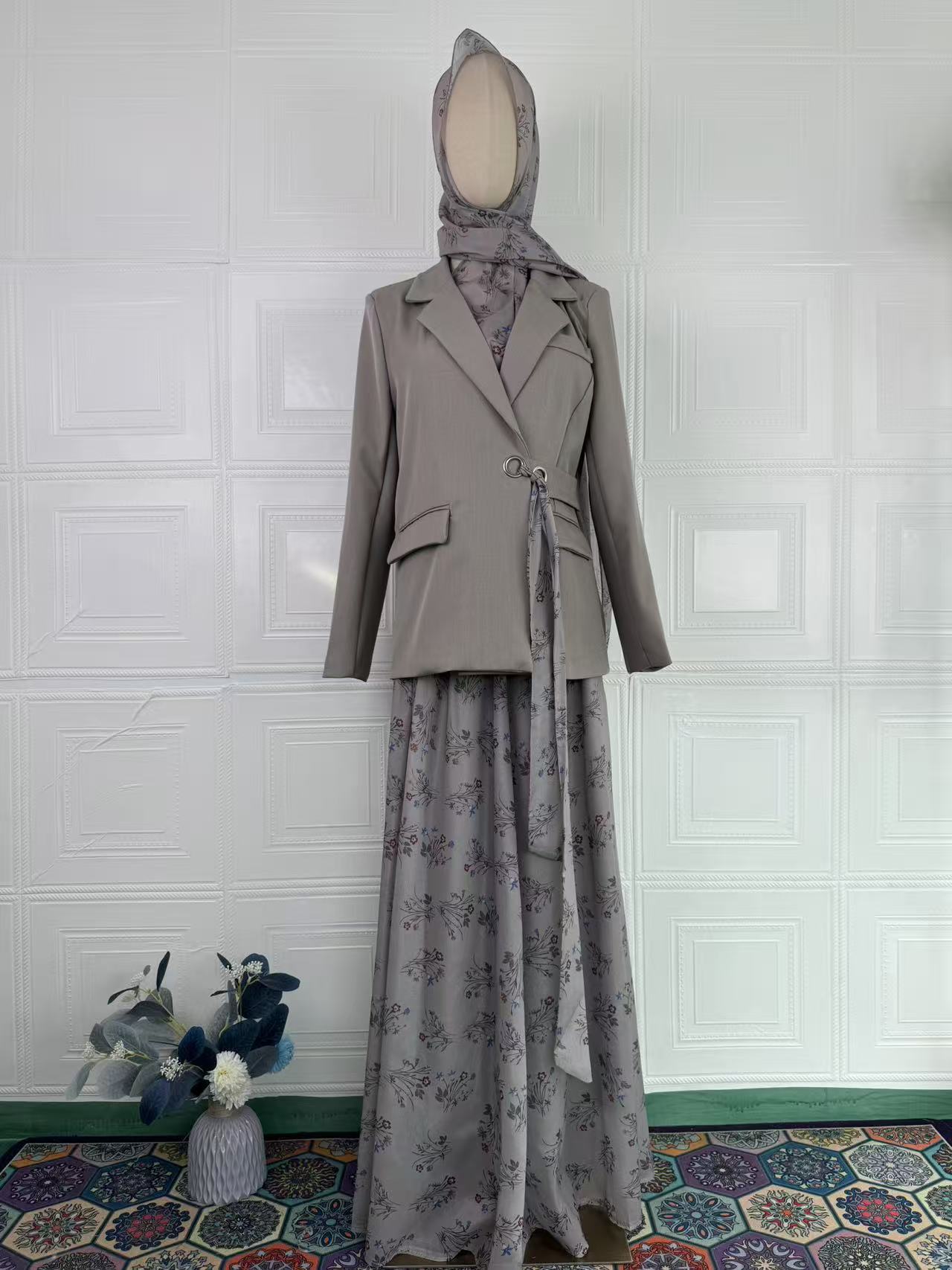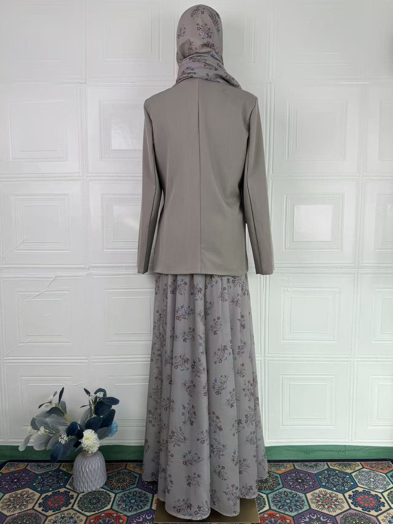 2025年に欧米の婦人服が国境を越えたアマゾンの純色の上品で暖かい雰囲気の長袖の上着のロングスカートの快適なスーツ