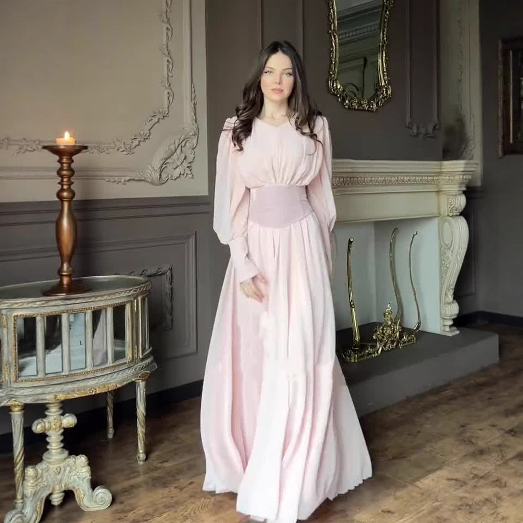 ヨーロッパとアメリカのアマゾンクロスボーダー2025春の新しいセクシーでエレガントな長袖ロングスカートレトロで柔らかい女性用ドレス