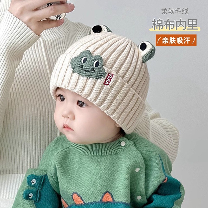 毛线帽秋冬季韩版婴幼儿可爱青蛙男女宝宝韩版针织套头护耳保暖厚