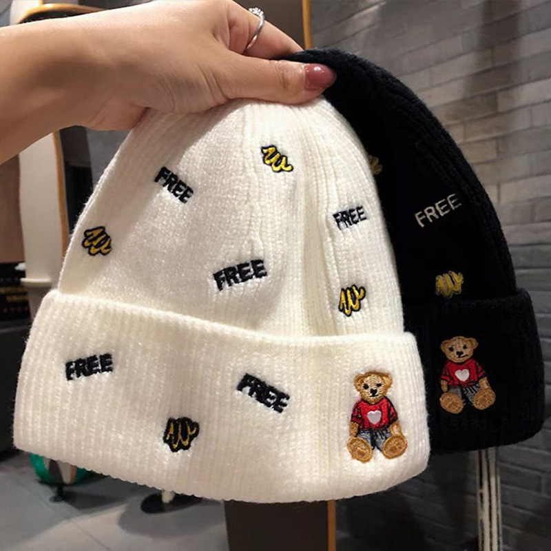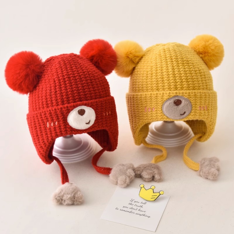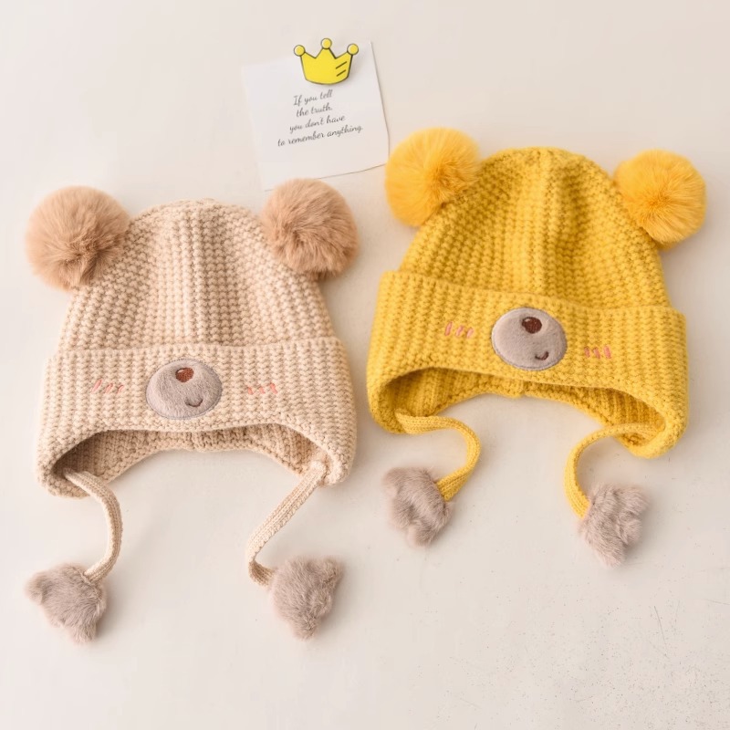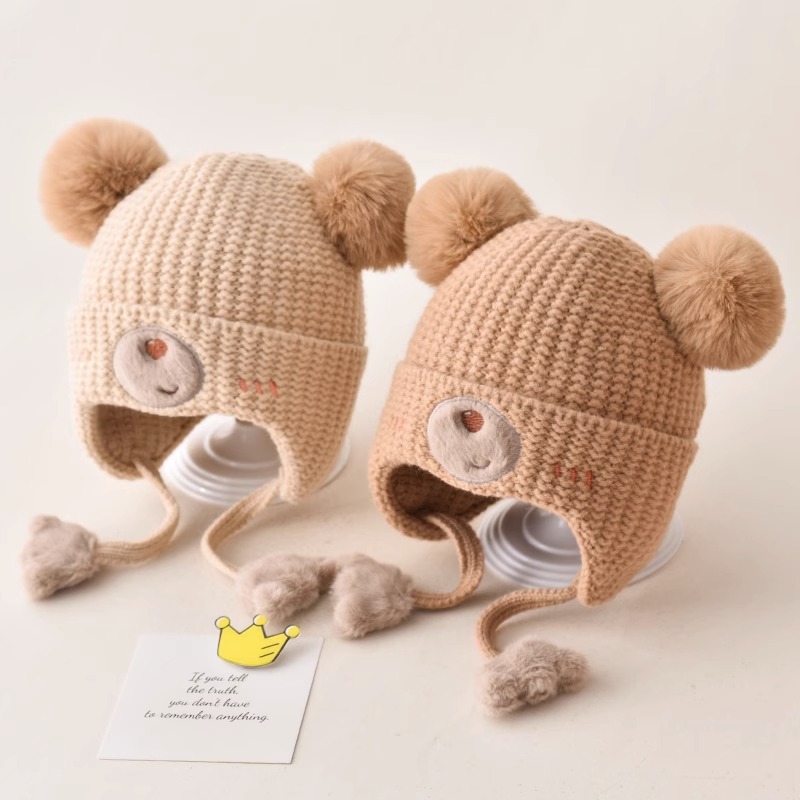 护耳小熊护脸帽子秋冬男女宝宝针织毛线帽可爱大眼睛双层保暖儿童