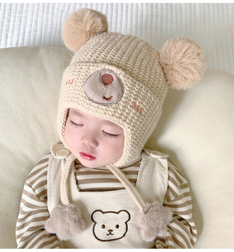 宝宝帽子秋冬季男女儿童毛线帽婴儿帽冬款护耳棉帽防风男童冬季帽