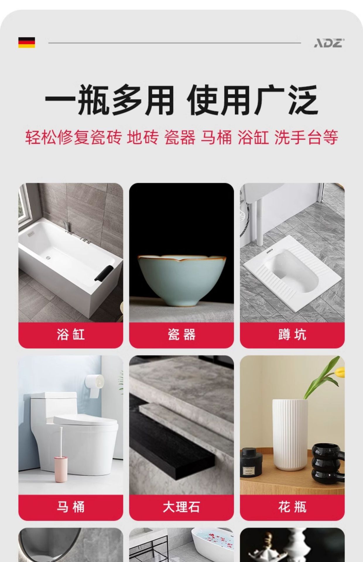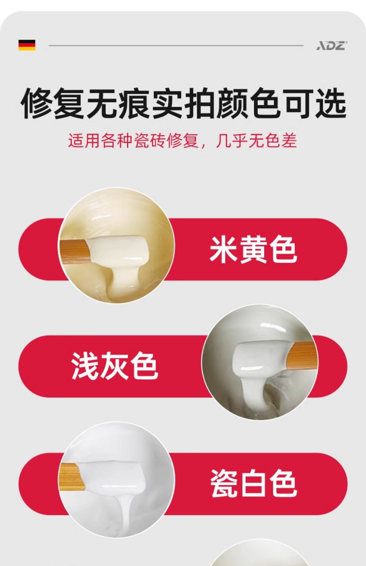 德,国,进,口,【自动配比】瓷白色100g无需调色(送工具),【自动配比】浅灰色100g无需调色(送工具),【自动配比-2小时速干】瓷白色100g无需调色(送工具),【自动配比-2小时速干】浅灰色100g无需调色(送工具),【德国进口原料丨釉面修复】釉面白450ml*1瓶装,【德国进口原料丨釉面增亮】透明色450ml*1瓶装,【自动配比】随心调色系列100克+10种色浆(送豪华工具),【自动配比】随心调色系列200克+10种色浆(送豪华工具),【自动配比】瓷白色200g无需调色(送工具),【自动配比】浅灰色200g无需调色(送工具),【自动配比】象牙白100g无需调色(送工具),【自动配比】象牙白200g无需调色(送工具),【自动配比】米黄色100g无需调色(送工具),【自动配比】米黄色200g无需调色(送工具),【自动配比】灰色系列100克+黑色色浆(送工具),【自动配比】黄色系列100克+黄色色浆(送工具),【自动配比】铁红系列100克+铁红色浆(送工具),【自动配比】咖啡色系列100克+咖啡色浆(送工具),【自动配比】黑色系列100克+黑色色浆(送工具),【A+B】浅灰色100g无需调色(送工具),【A+B】浅灰色200g无需调色(送工具),【A+B】瓷白色100g无需调色(送工具),【A+B】瓷白色200g无需调色(送工具),【A+B】米黄色100g无需调色(送工具),【A+B】米黄色200g无需调色(送工具),【A+B】象牙白100g无需调色(送工具),【A+B】象牙白200g无需调色(送工具),【A+B】灰色系列100克+黑色色浆(送工具),【A+B】黄色系列100克+黄色色浆(送工具),【A+B】咖啡色系列100克+咖啡色浆(送工具),【A+B】黑色系列100克+黑色色浆(送工具),【A+B】铁红系列100克+铁红色浆(送工具)