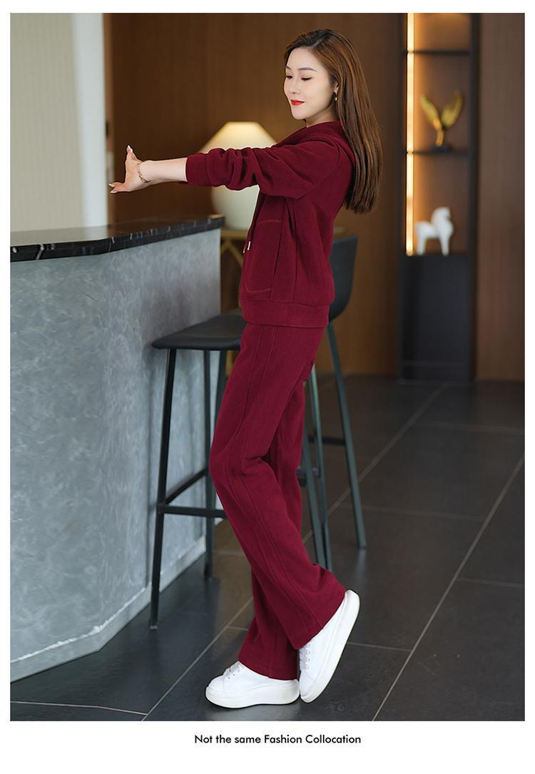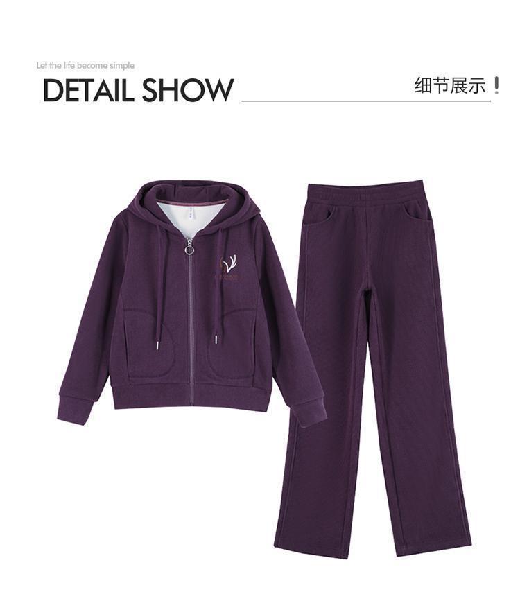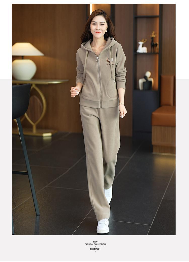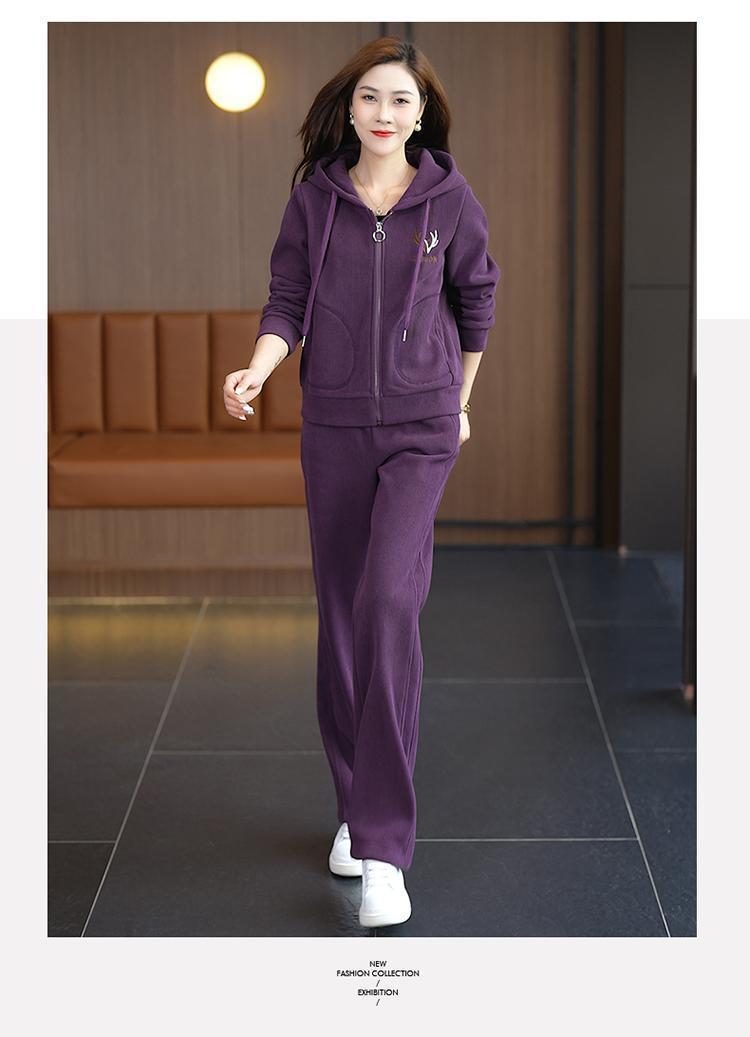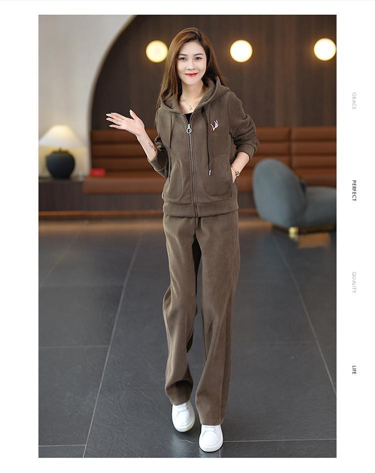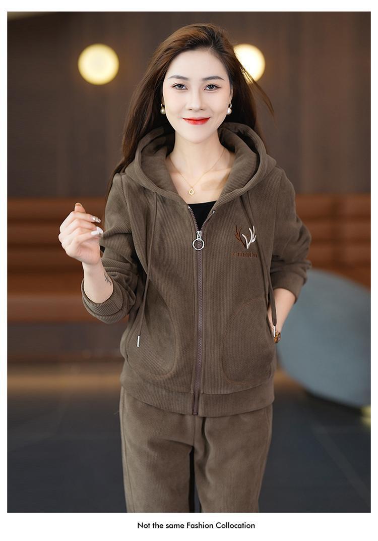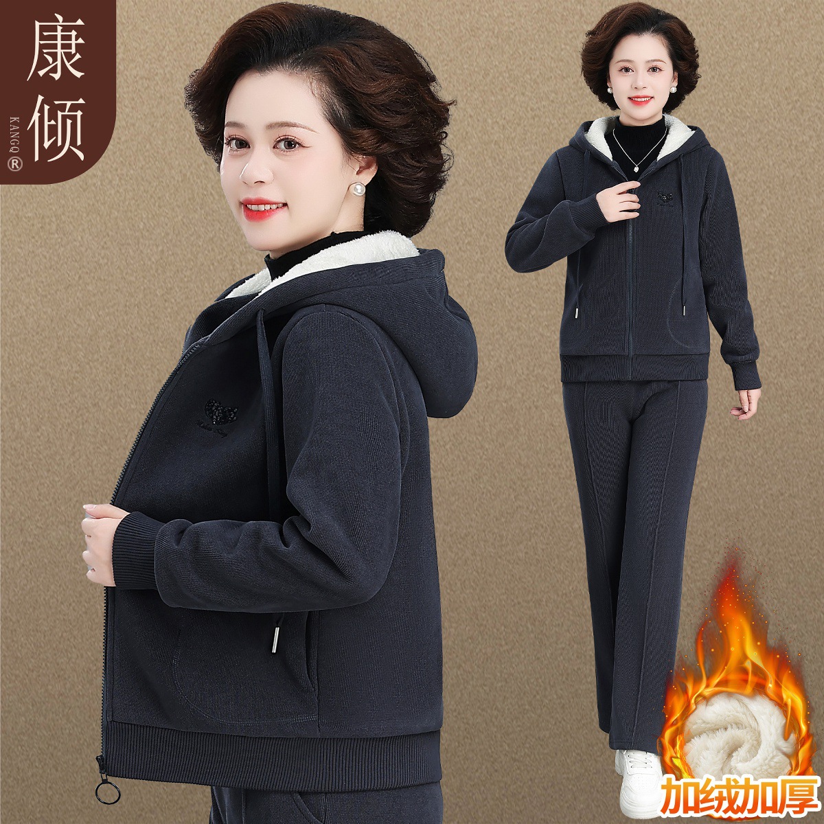 加绒加厚新款冬季休闲洋气宽松连帽卫衣运动服套装妈妈两件套冬天