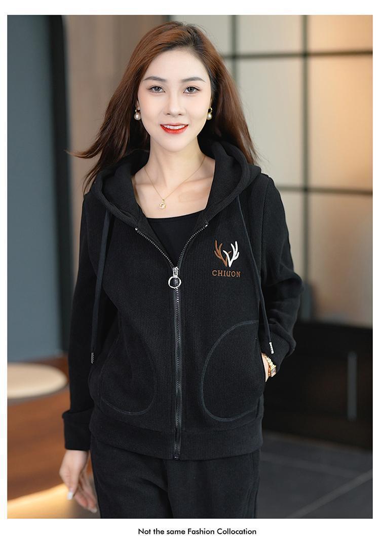 ベルベットは中年の母親服のスポーツウェアを厚くして、秋冬の新しいファッションカジュアルなカーディガンのズボンセットを2つセットセットしています