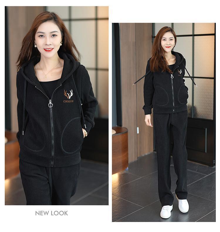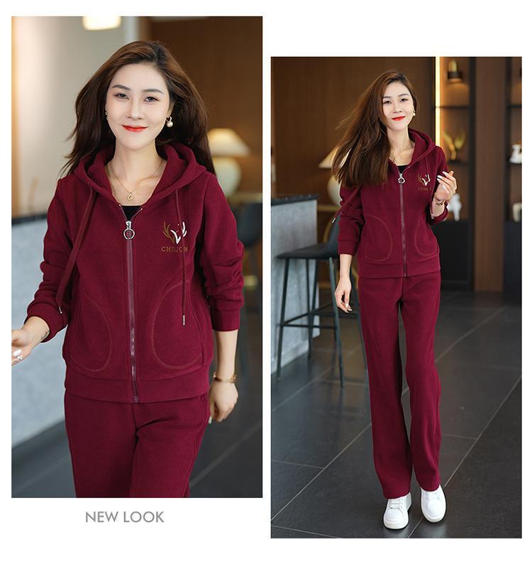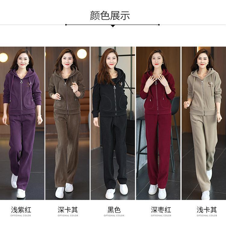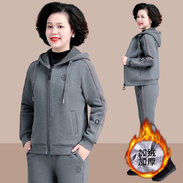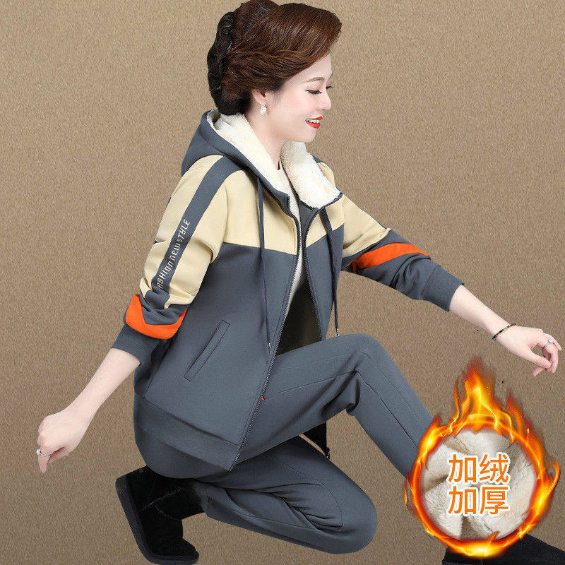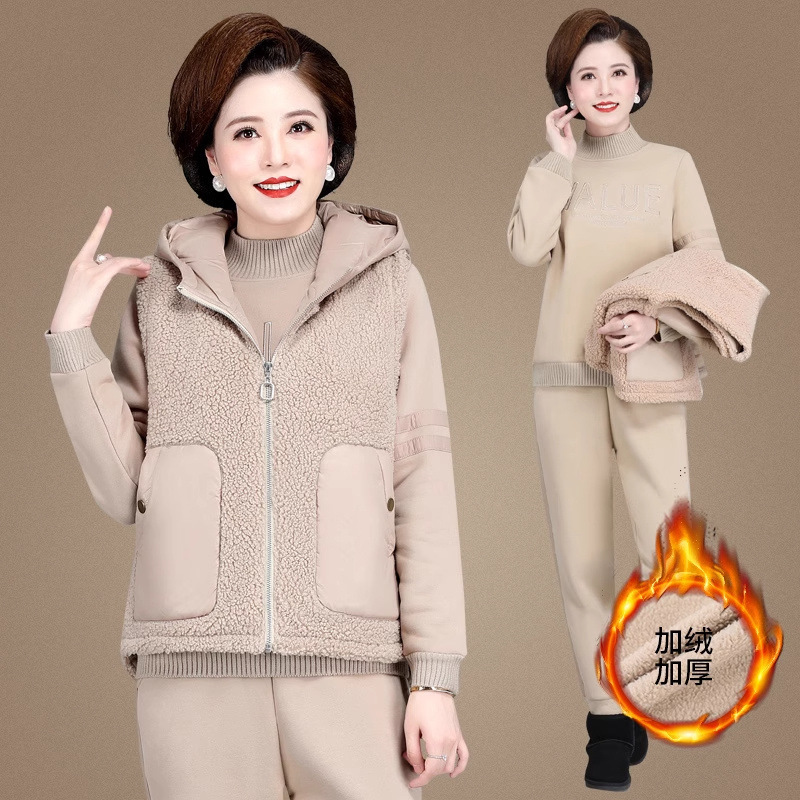 中年のお母さんの冬服の羊の小毛のコートの中で老年の運動のスーツの女性の秋冬の加毛の厚い衛衣の3セット