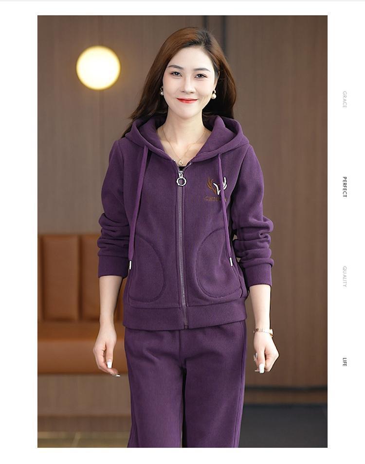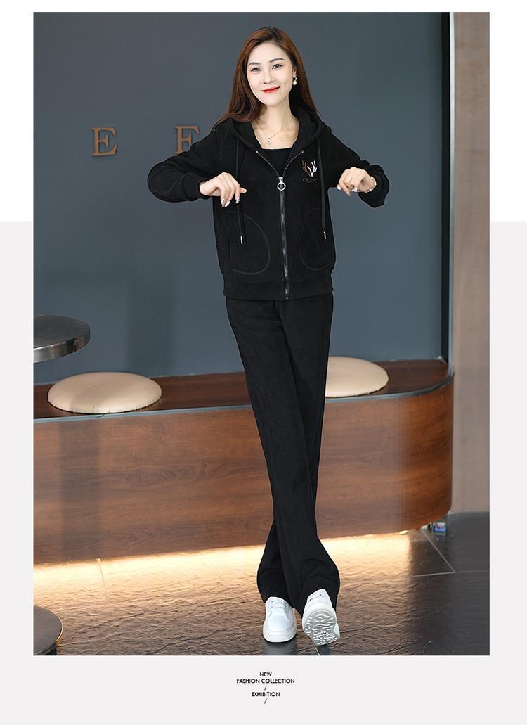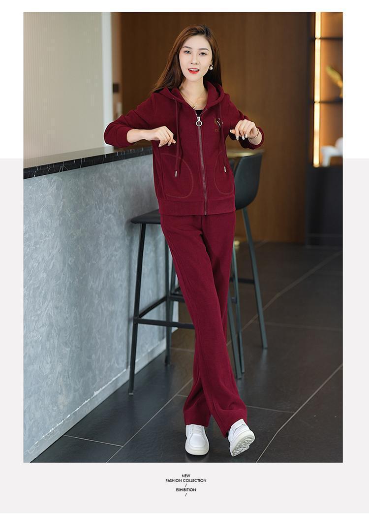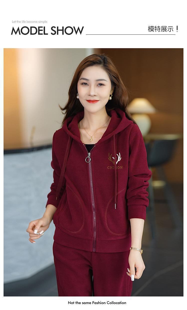 中年のお母さんの冬服の羊の小毛のコートの中で老年の運動のスーツの女性の秋冬の加毛の厚い衛衣の3セット