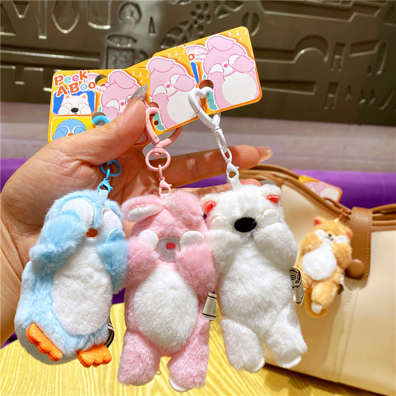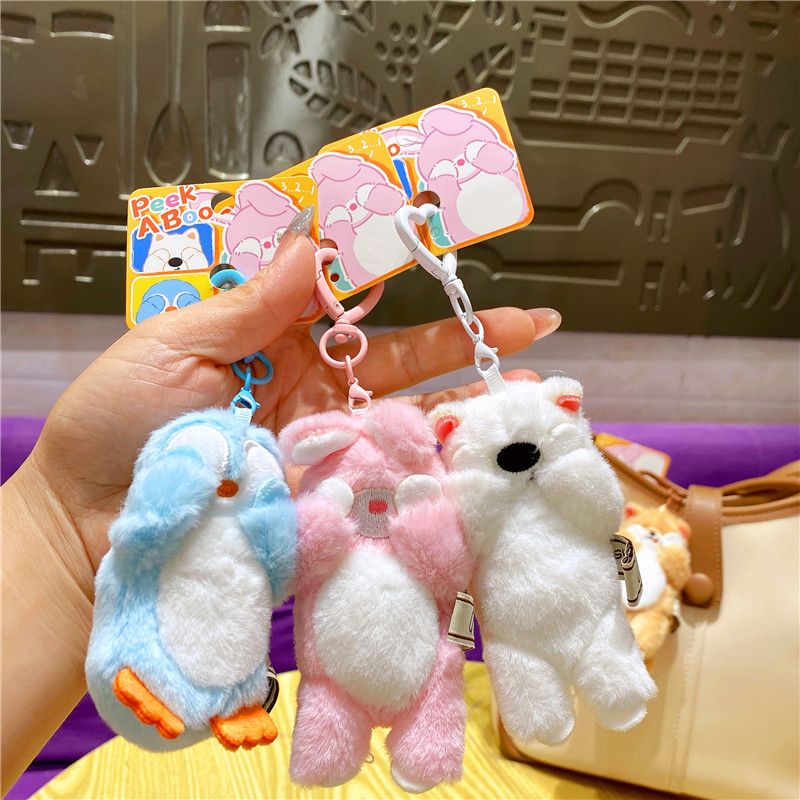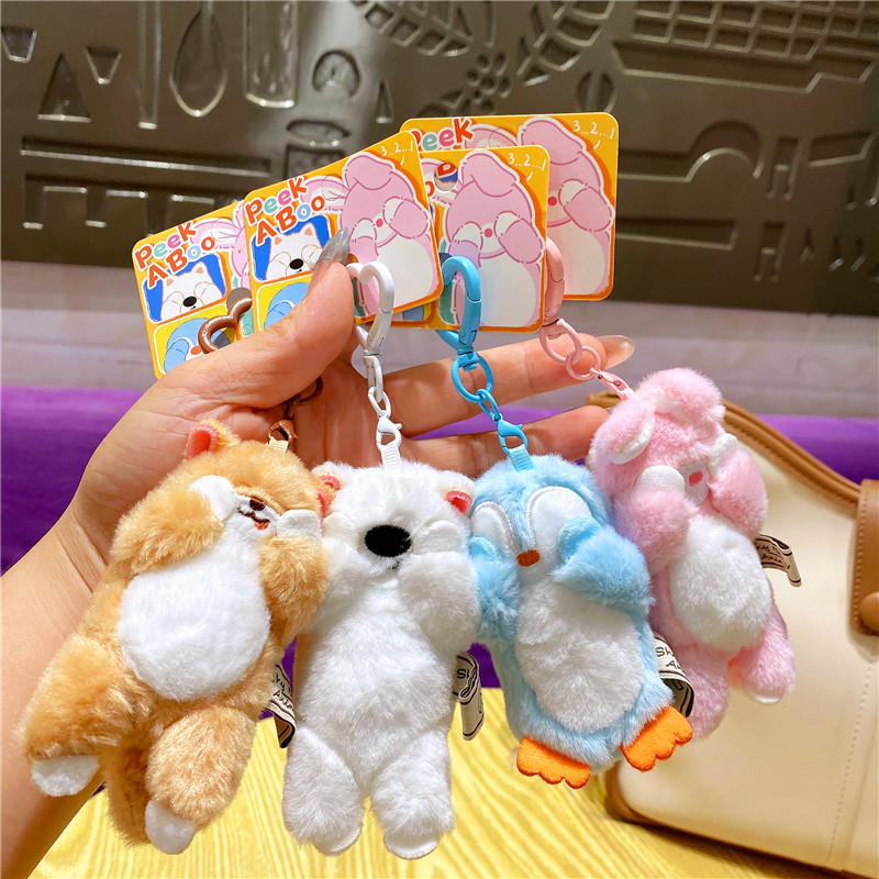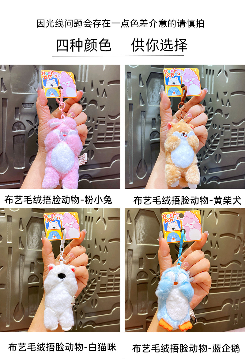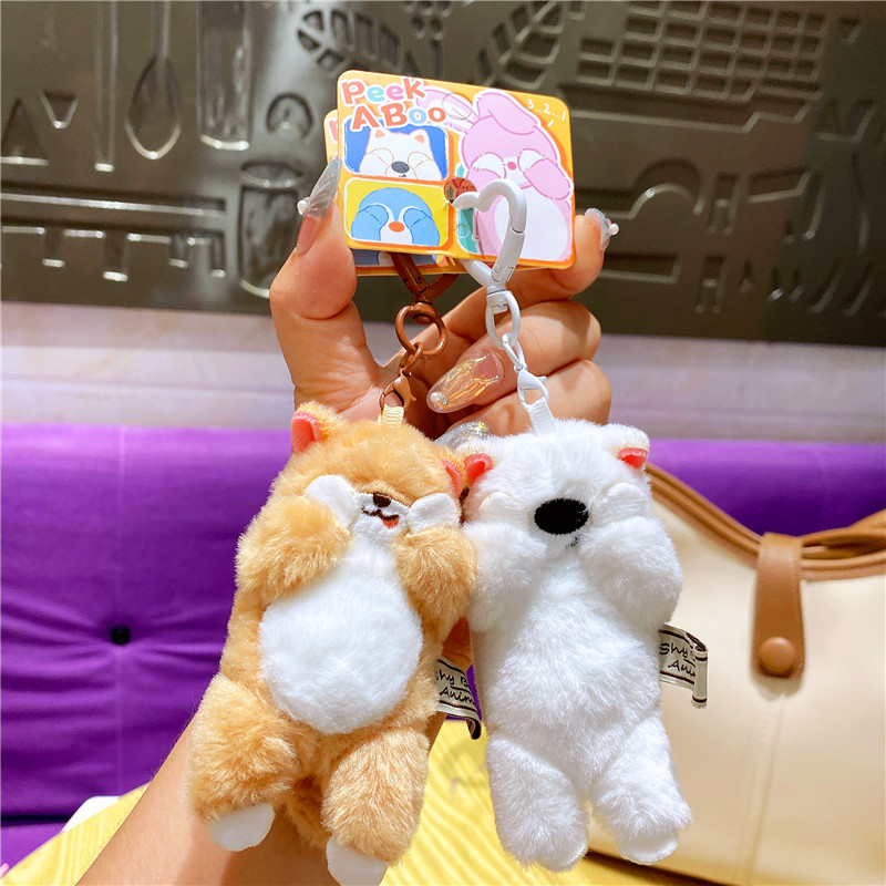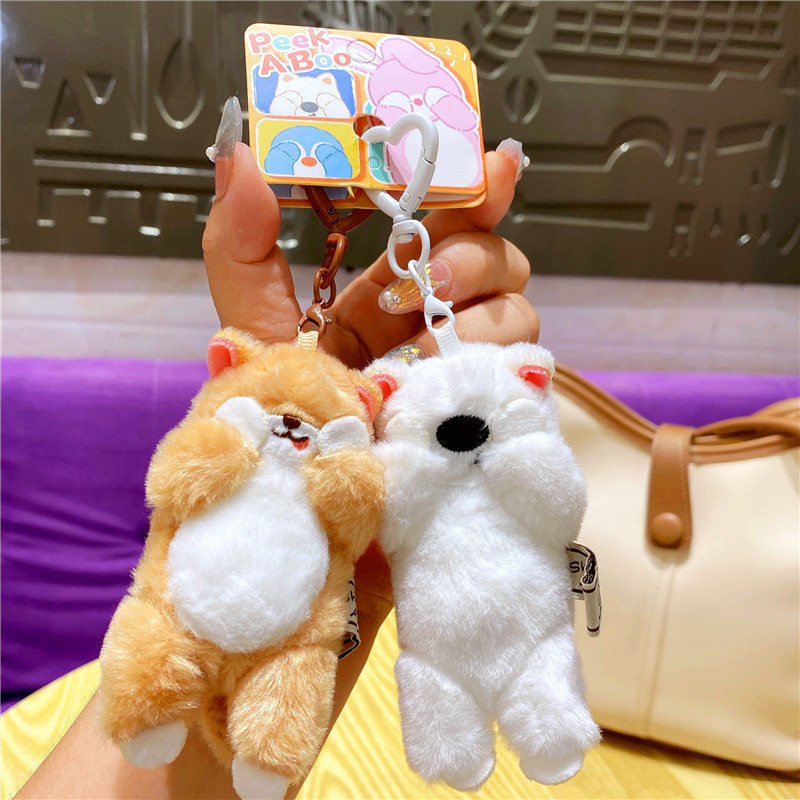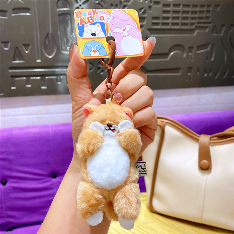 网红布艺毛绒卡通可爱柴犬小猫捂脸动物钥匙扣挂件玩偶情侣包挂饰