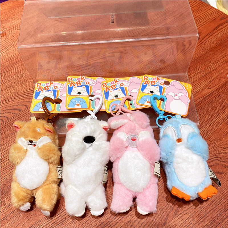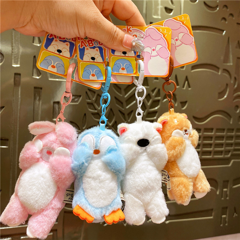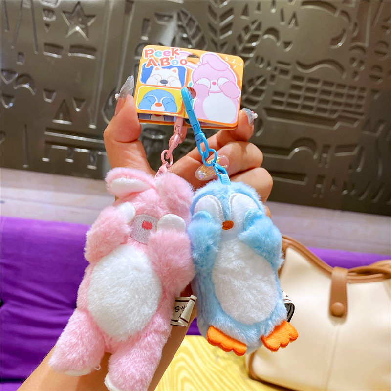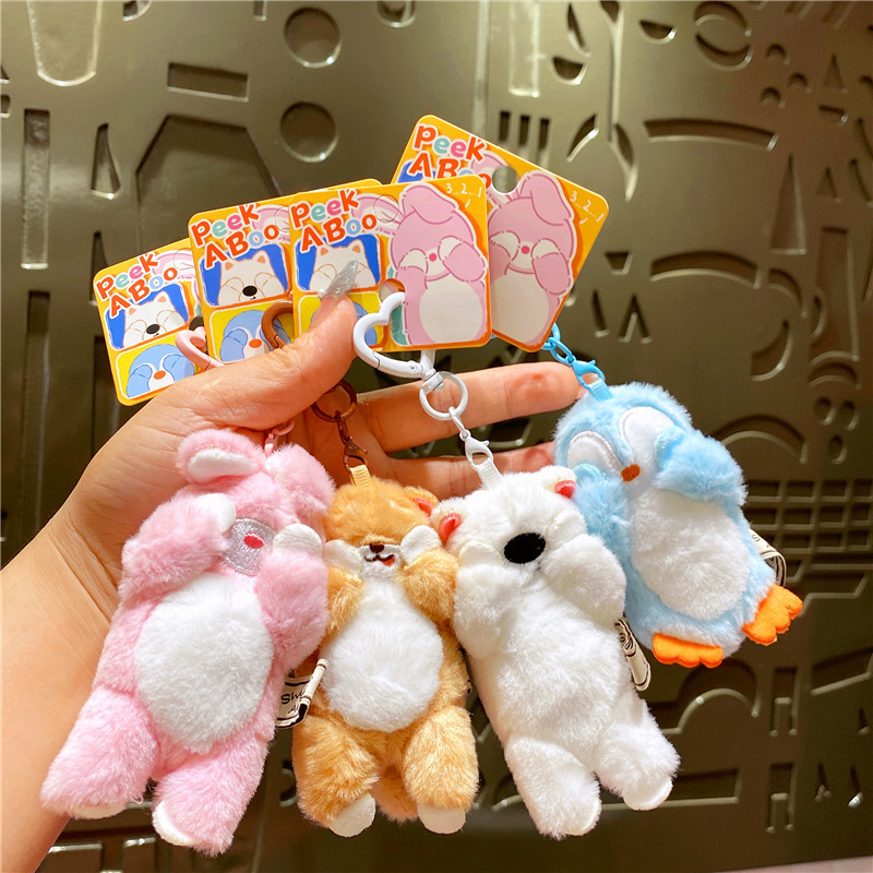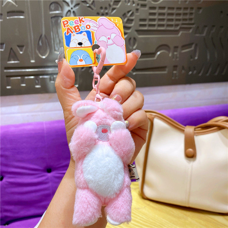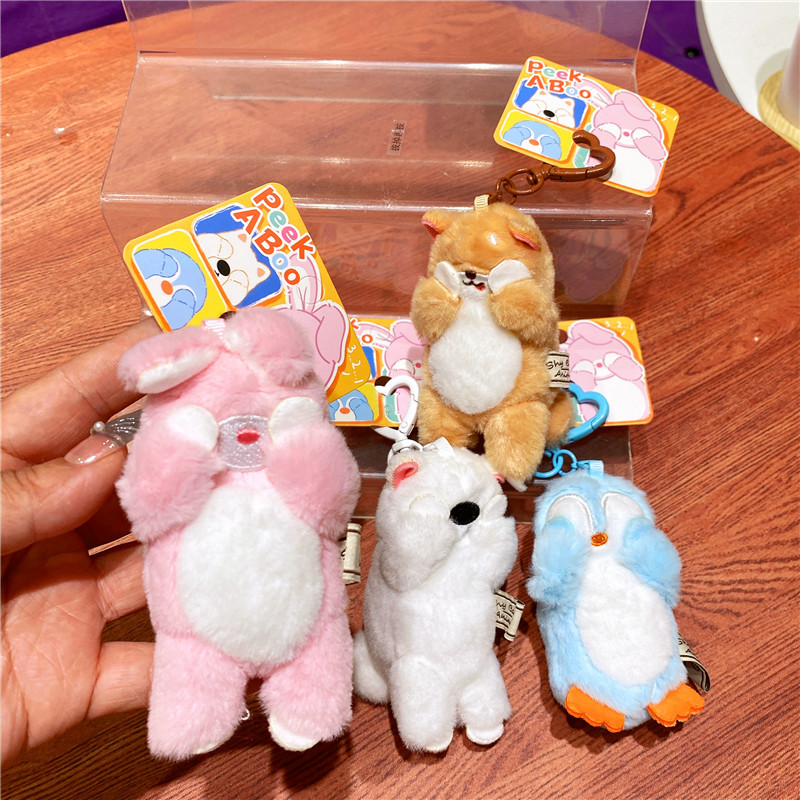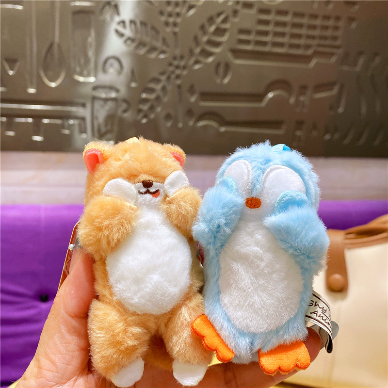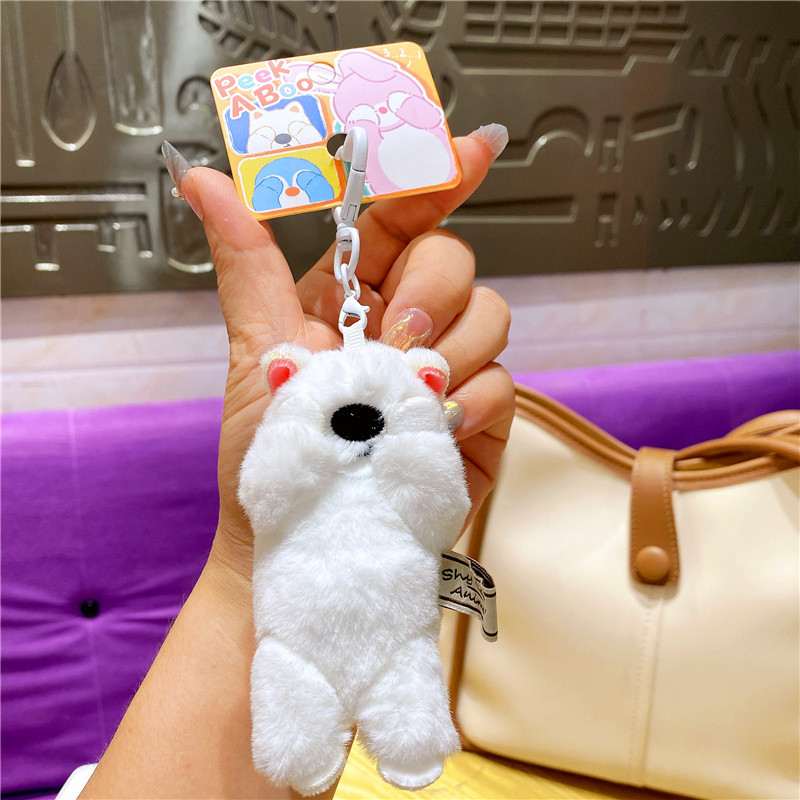 网红布艺毛绒卡通可爱柴犬小猫捂脸动物钥匙扣挂件玩偶情侣包挂饰