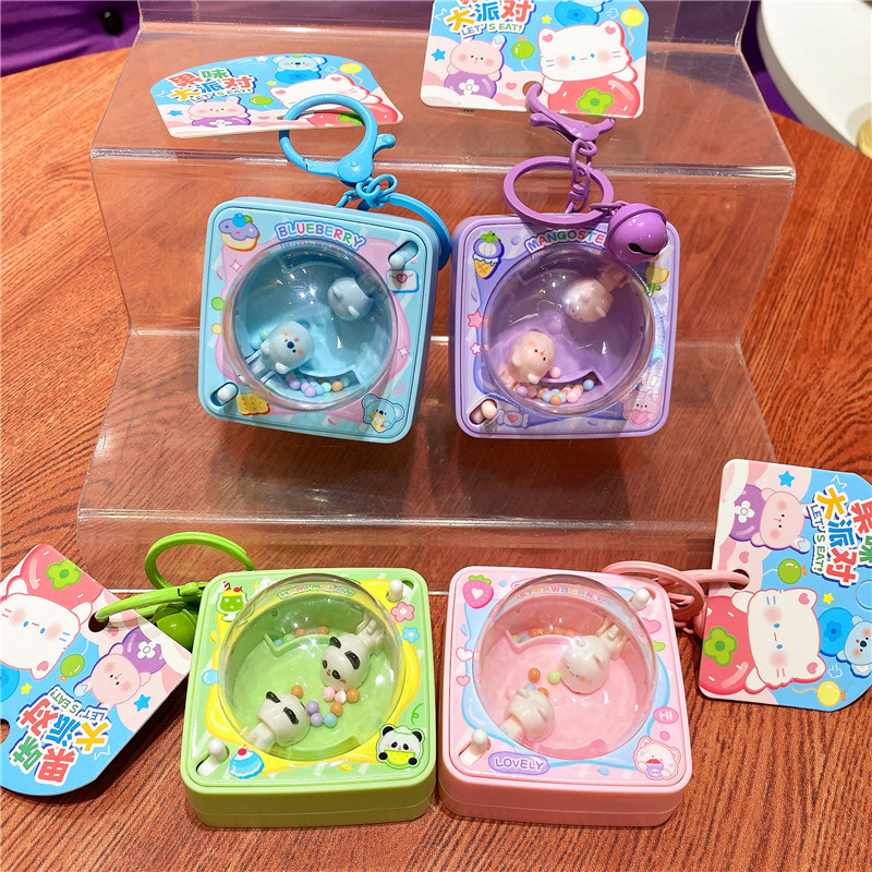 网红趣味果果乐园熊猫吃豆机钥匙扣挂件治愈解压钥匙链闺蜜包挂饰