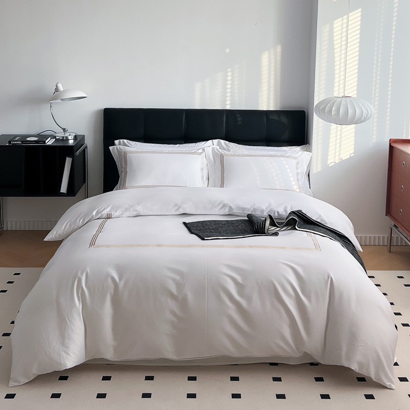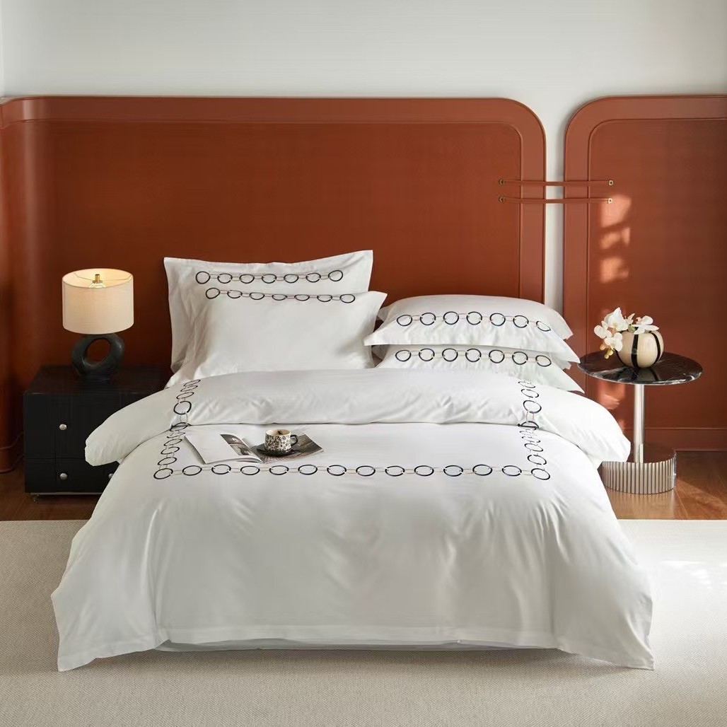 純綿寝具4点セット、高級刺繍ベッドシーツ、掛け布団カバー、枕カバー、ホームテキスタイル、B&B、ホテルリネン卸売