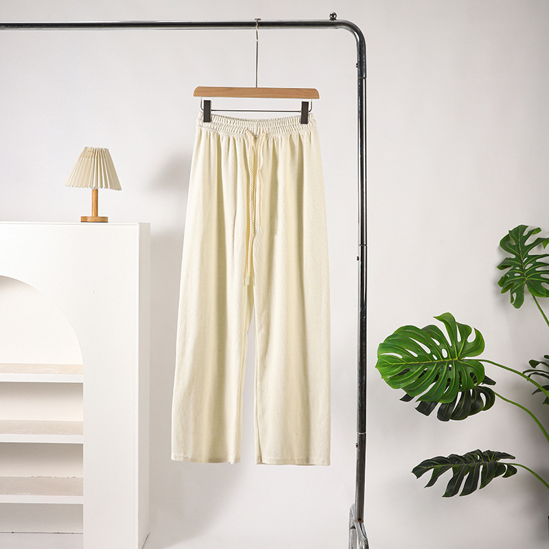 氷の糸のしわの広腿のズボンの女性の夏の薄い金の韓国版の高い腰のカジュアルなまっすぐな筒の怠惰な綿の麻のしわの山本の禅の意のズボン