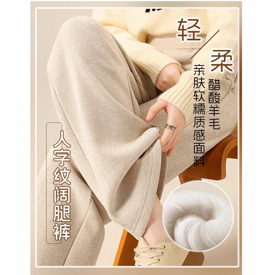 人字纹毛呢裤子女秋冬2025高腰休闲软糯羊绒裤窄版加绒阔腿裤