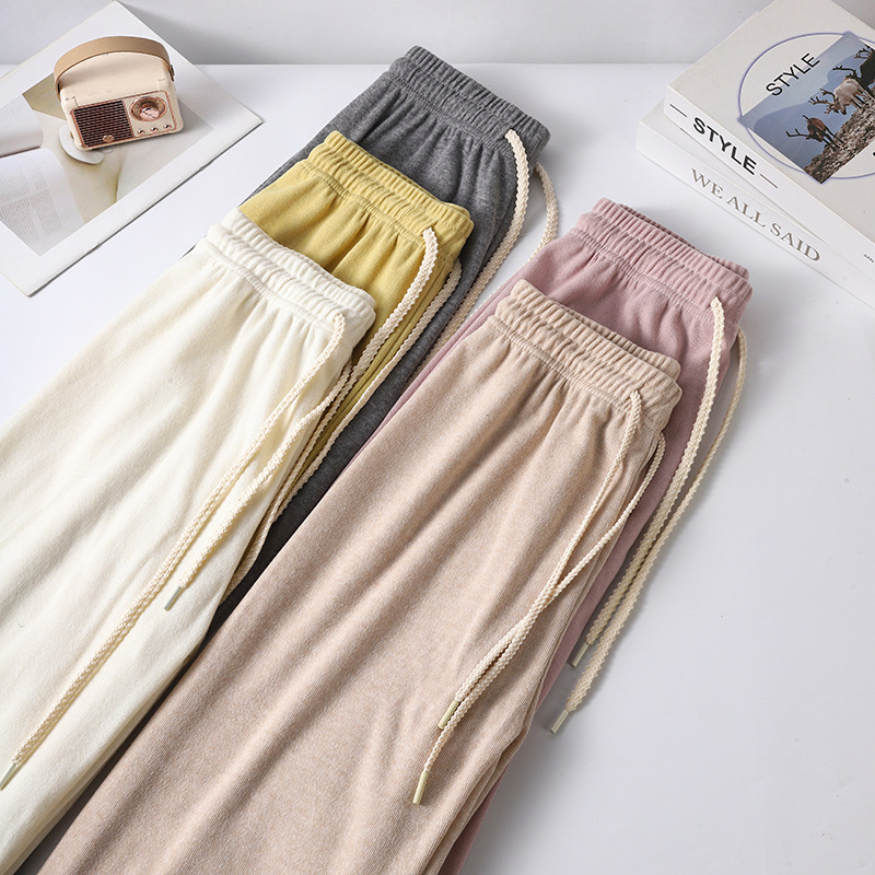 2025新款慵懒风糯米绒阔腿裤女秋款松弛感直筒长裤宽松百搭休闲裤