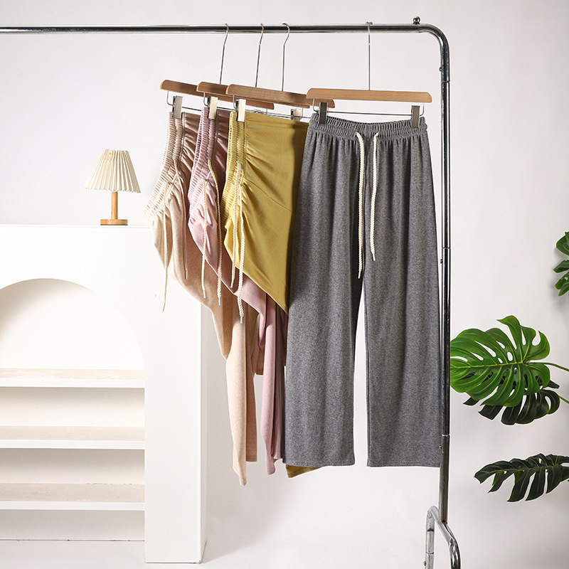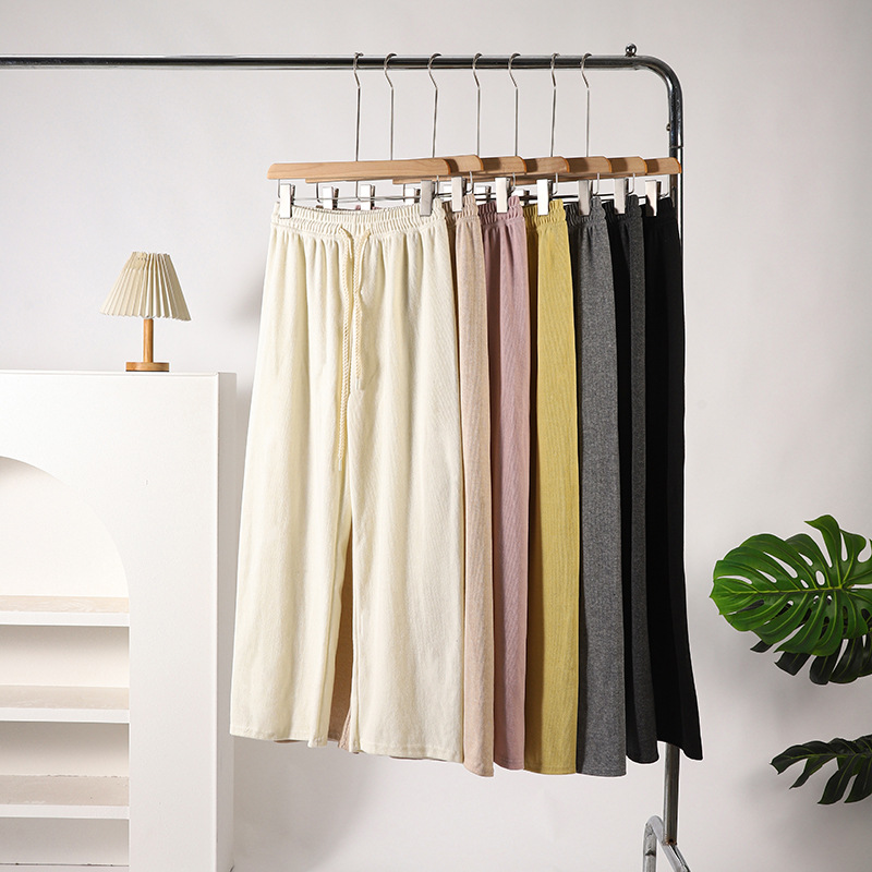 秋冬新作ニット裏起毛もちもちパンツ、ドレープ感のある柔らかなワイドパンツ、レディースハイウエストゆったり細身ロングパンツ