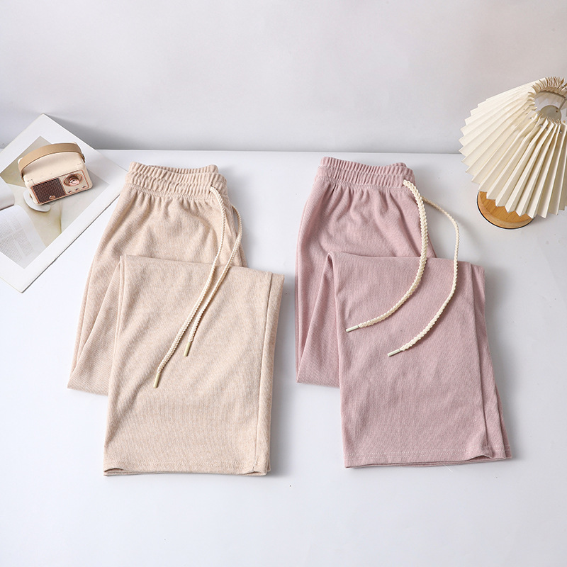 夏の狭い版の7色の雲のズボンの女性のハイウエストは明らかにやせているストレートの筒のニットのワイドレギンスのズボンの垂れ下がっている感じがあります。