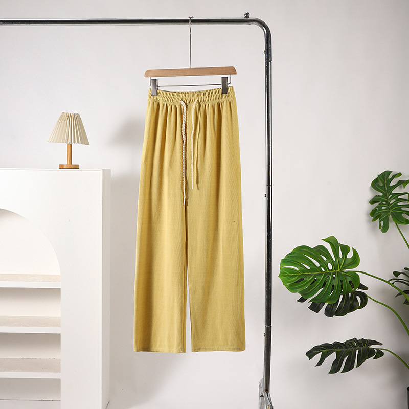ロープアイスパンツのワイドパンツ女性ストレート夏の薄いタイプのハイウエストのペンダント感があります。