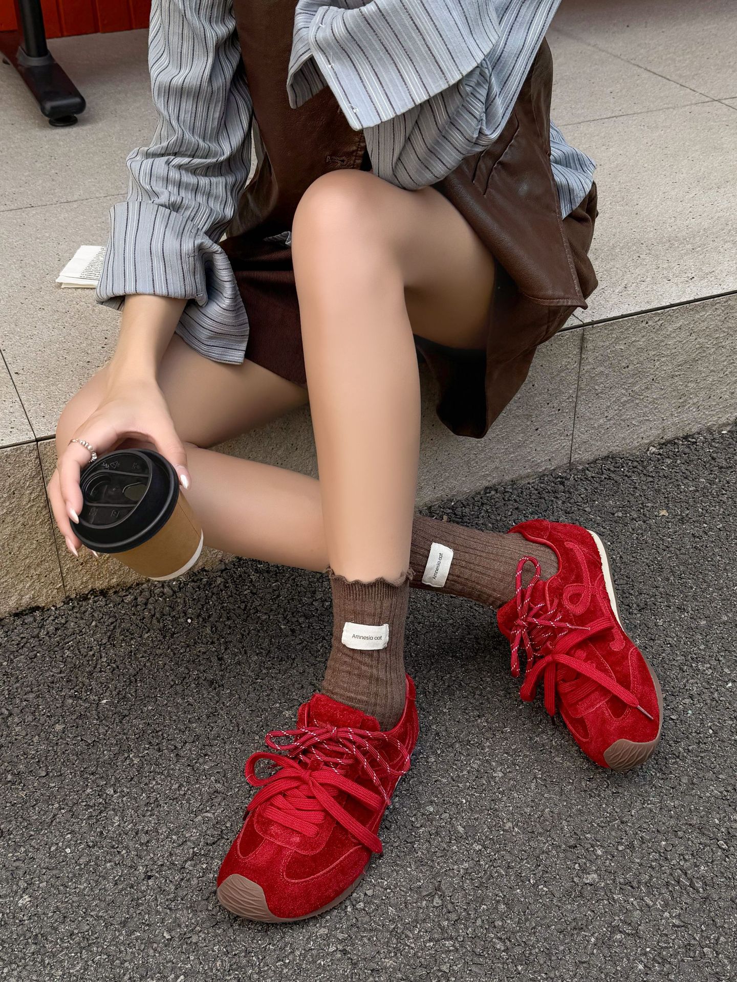 2026春季新款爆款红色厚底老爹鞋女阿甘德训鞋户外百搭休闲运动鞋