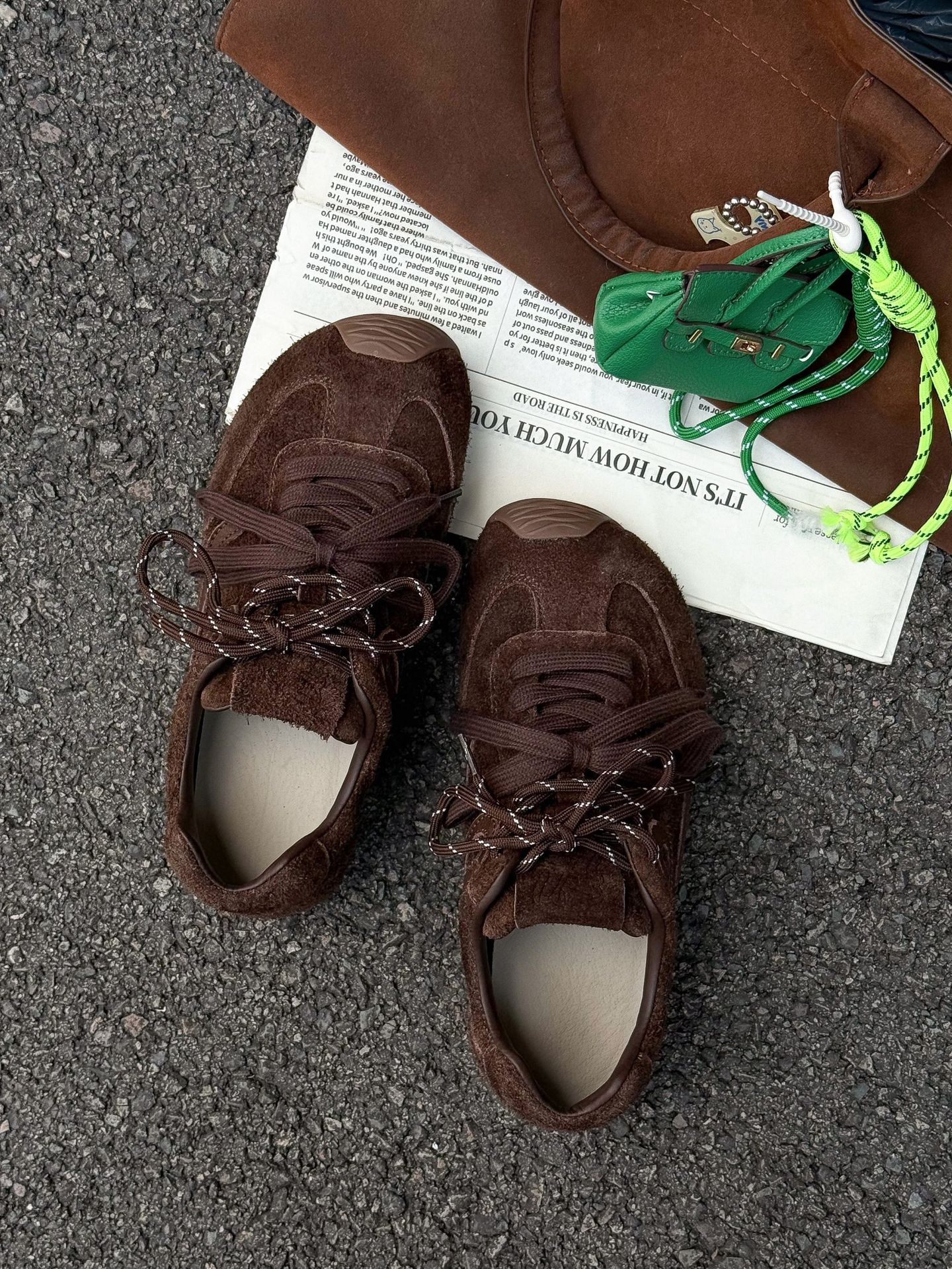 2025秋冬新款真皮德训鞋百搭平底复古阿甘鞋羊羔毛牛反绒皮休闲鞋