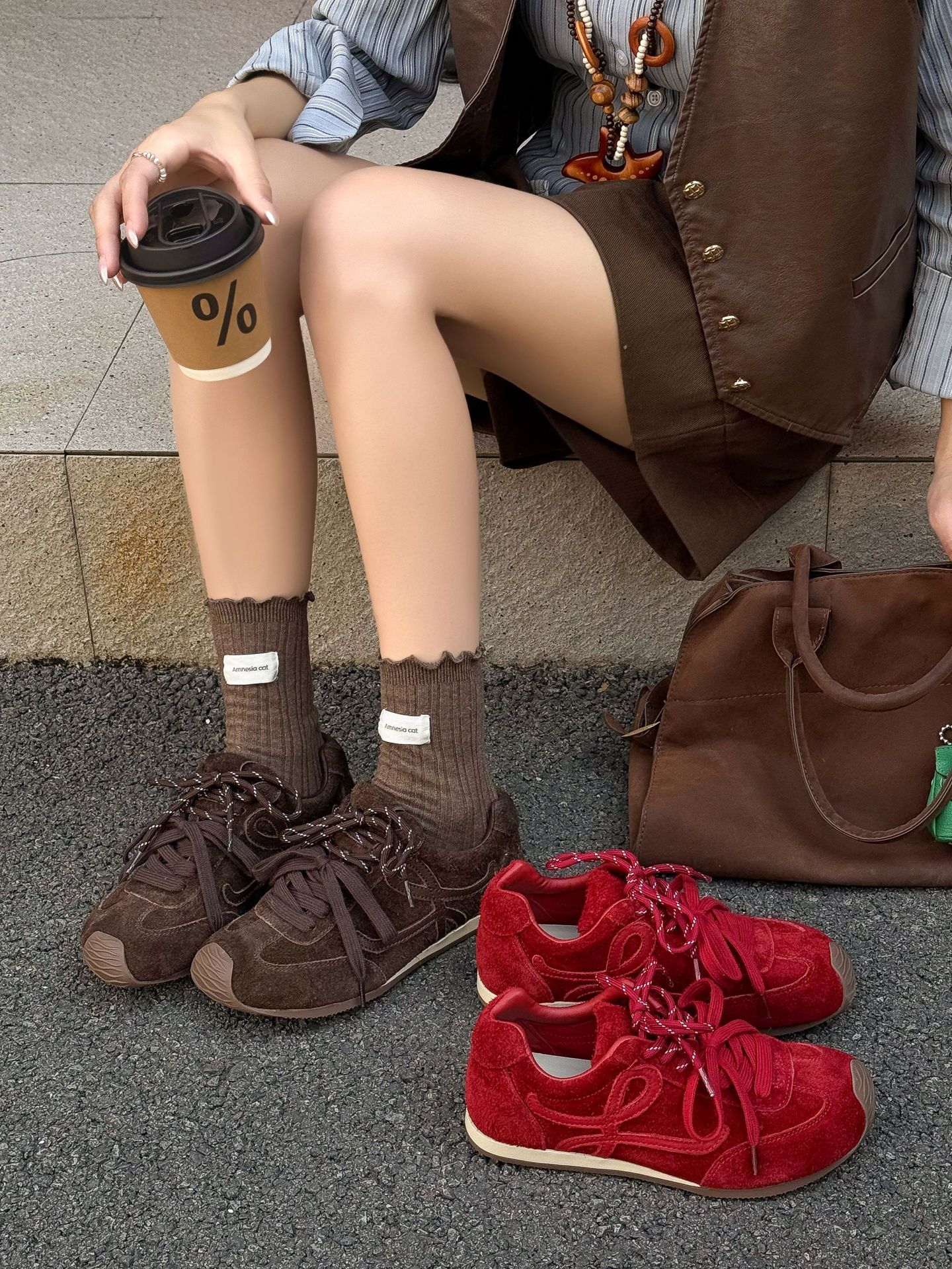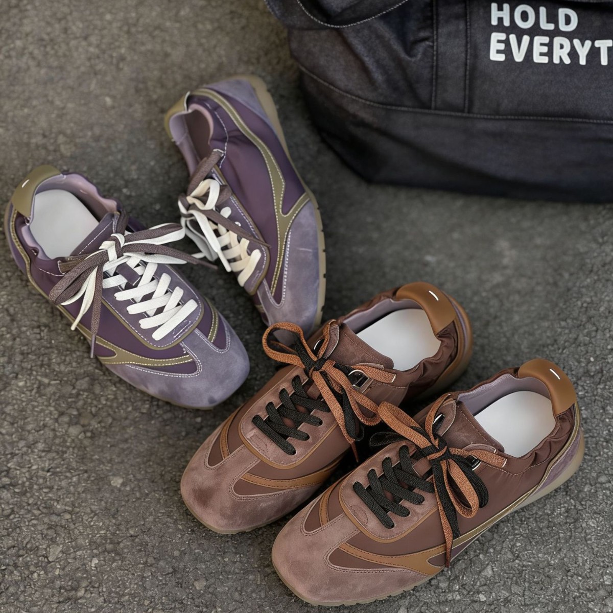 2025秋新款拼色系带休闲百搭磨砂牛皮复古德训鞋平底运动阿甘女鞋
