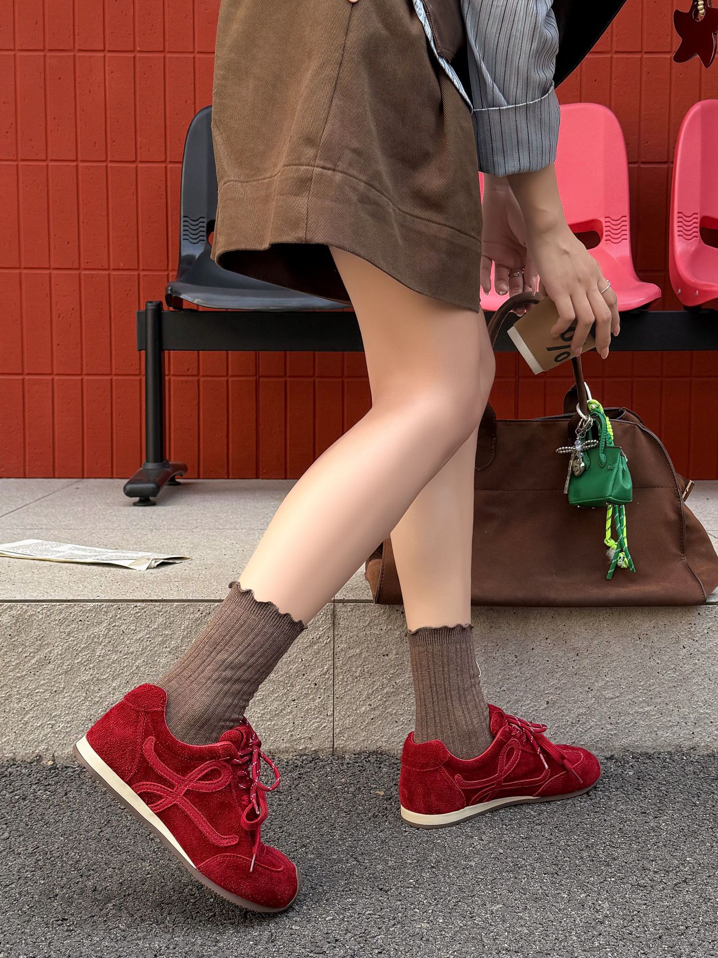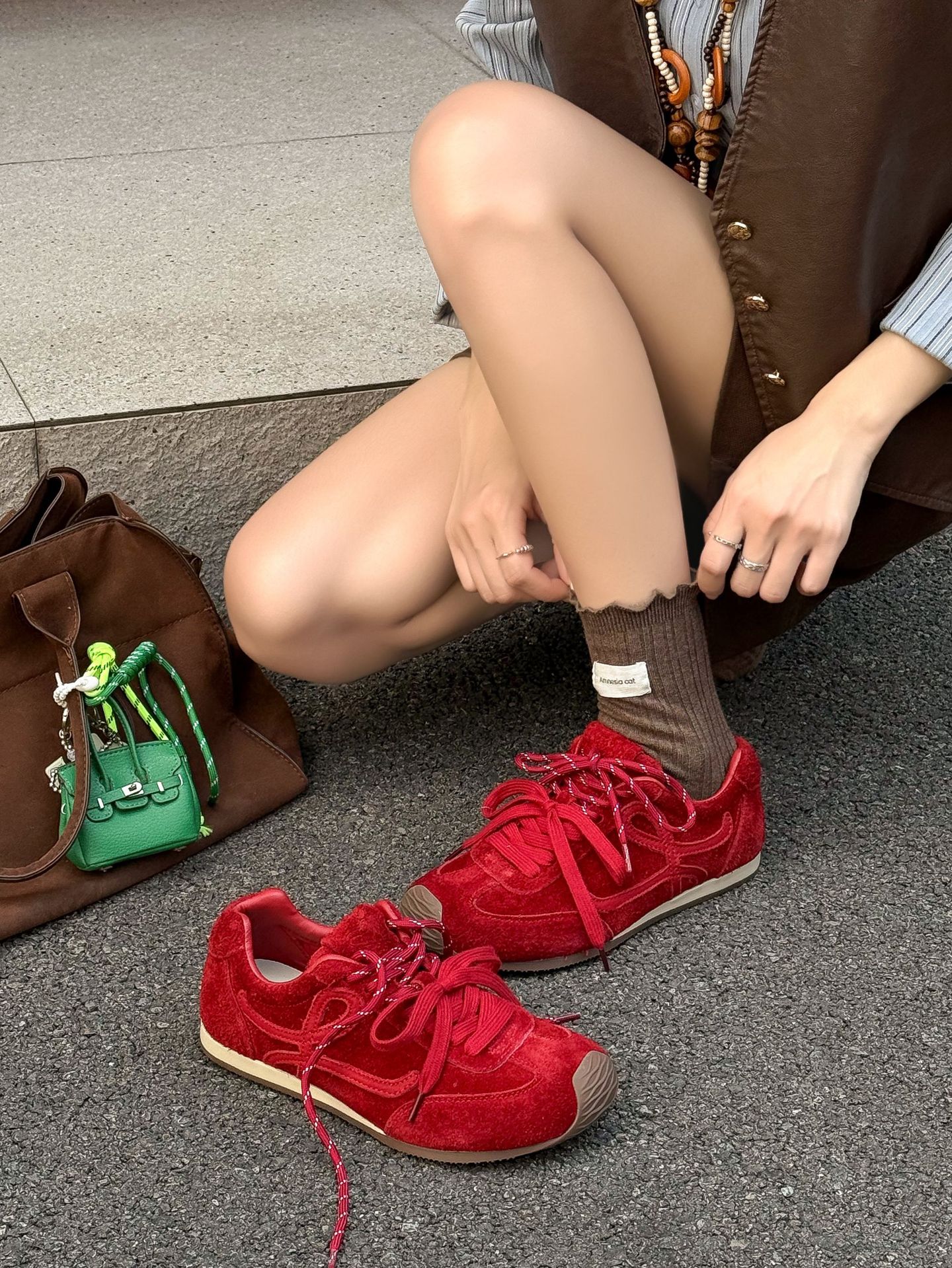 2025秋冬新款赛车运动时尚休闲百搭鞋板鞋平底撞色拼接德训鞋女鞋