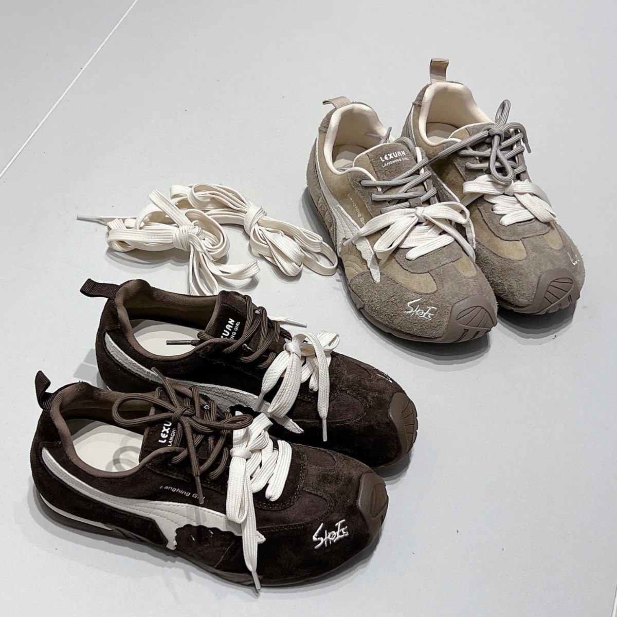 2026春季新款猪巴皮韩版复古百搭休闲运动内增高阿甘德训鞋潮鞋女