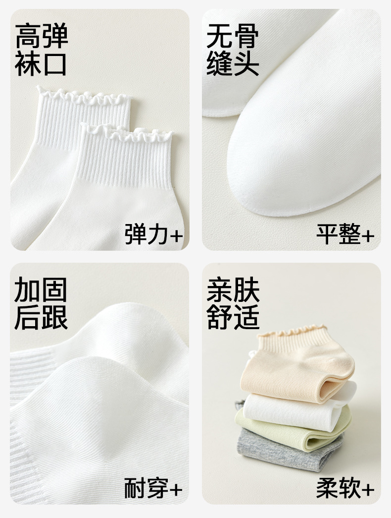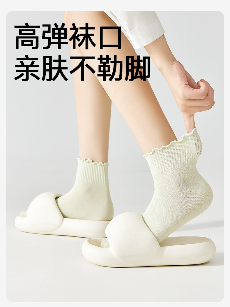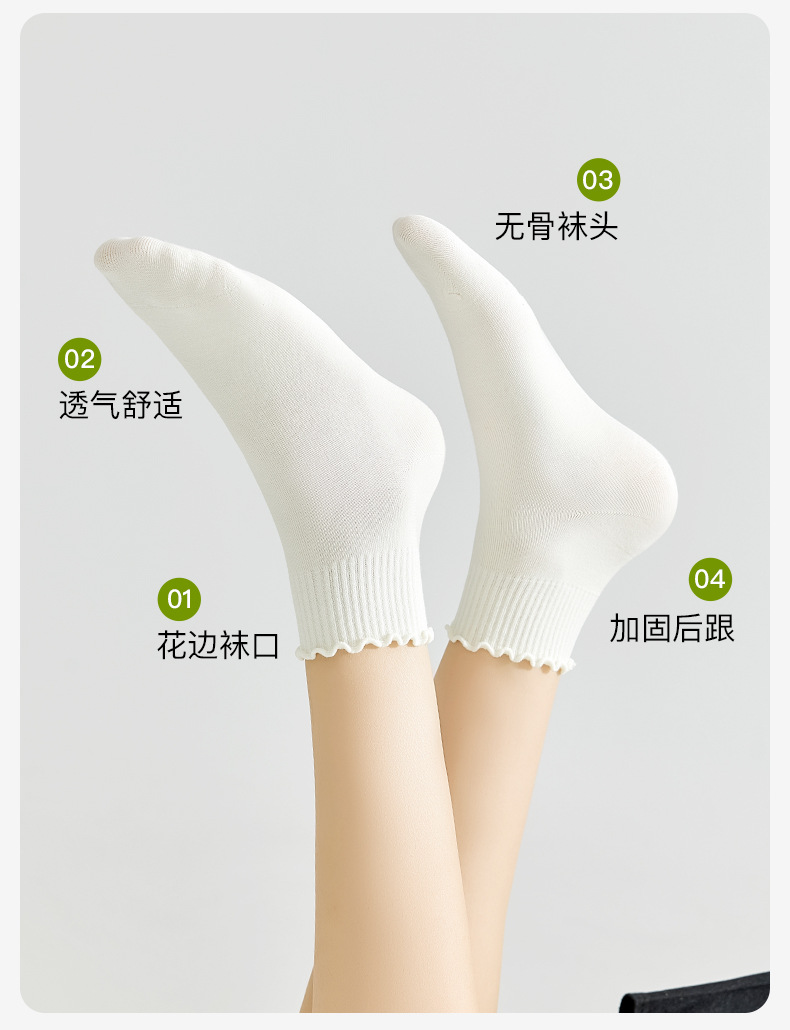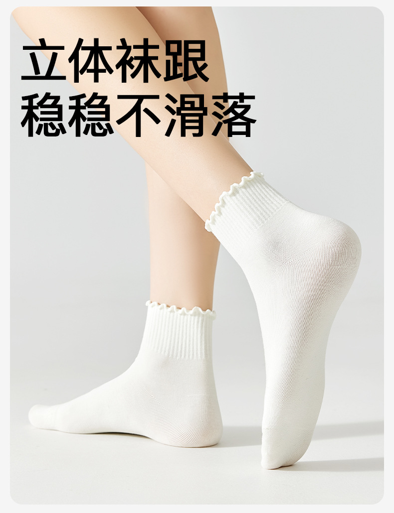 木耳边袜子女款纯棉春秋无骨短袜防臭吸汗中筒袜配小皮鞋棉袜夏季
