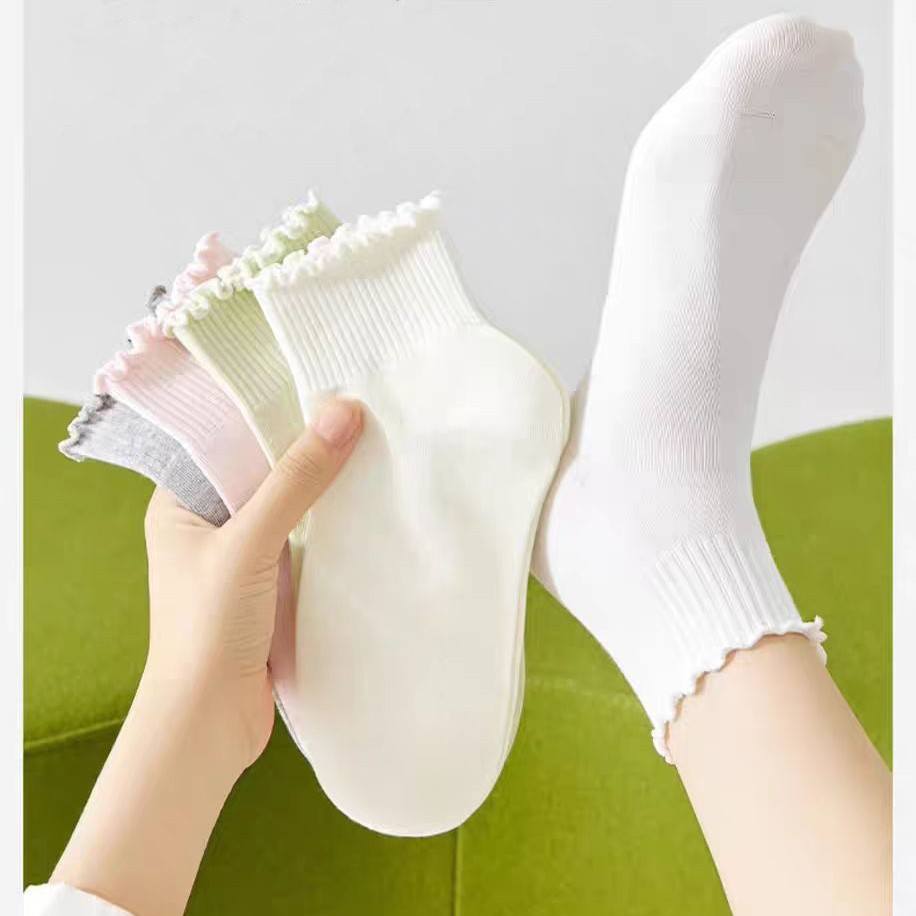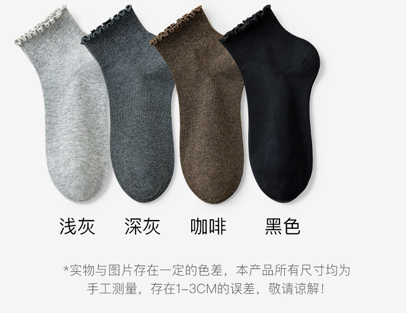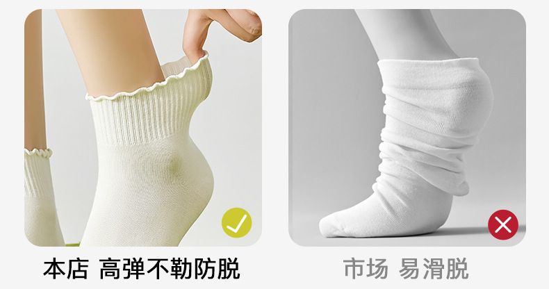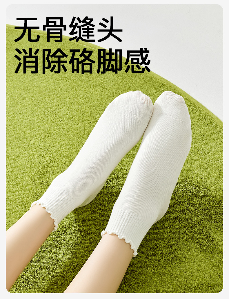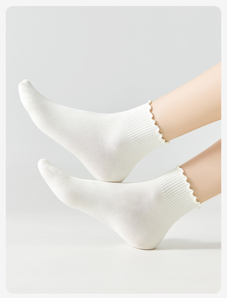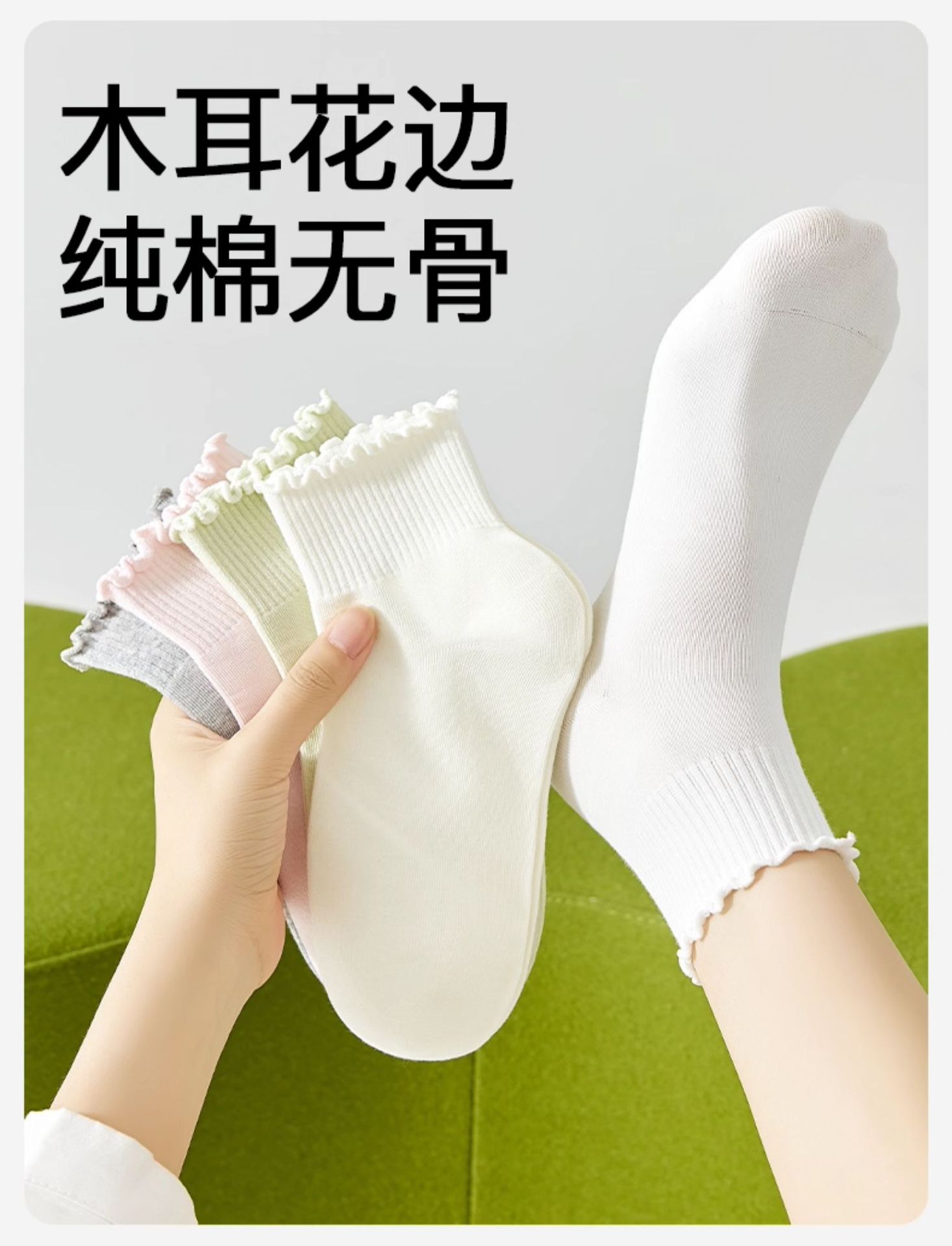 木耳边袜子女款纯棉春秋无骨短袜防臭吸汗中筒袜配小皮鞋棉袜夏季