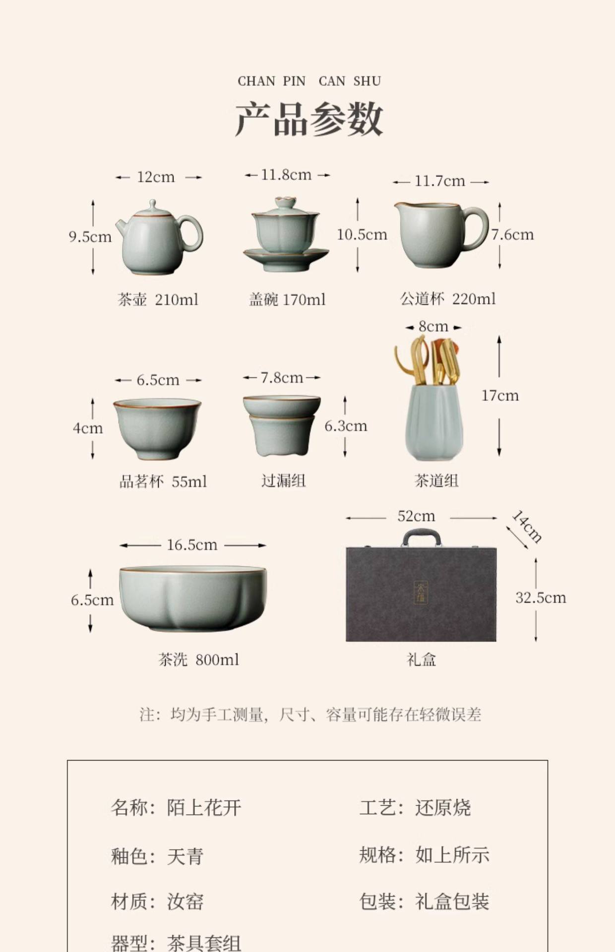 汝窑陌上花开盖碗10件套--礼盒包装,汝窑天青西施壶10件套--礼盒包装,汝窑花好月圆茶壶10件套--礼盒包装,汝窑陌上花开龙蛋壶13件套--礼盒包装,汝窑天青西施壶13件套--礼盒包装,汝窑花好月圆盖碗+茶壶13件套--礼盒包装,汝窑陌上花开龙蛋壶15件套--礼盒包装,汝窑天青西施壶15件套--礼盒包装,汝窑天青汉瓦壶15件套--礼盒包装,汝窑豆青陌上花开盖碗10件套--礼盒包装,汝窑豆青陌上花开盖碗+茶壶13件套--礼盒包装