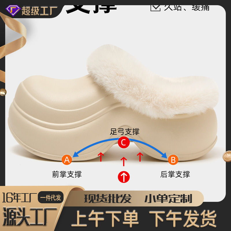 足弓支撑棉拖鞋女士新款秋冬季外穿厚底保暖毛绒防水棉拖女款批发