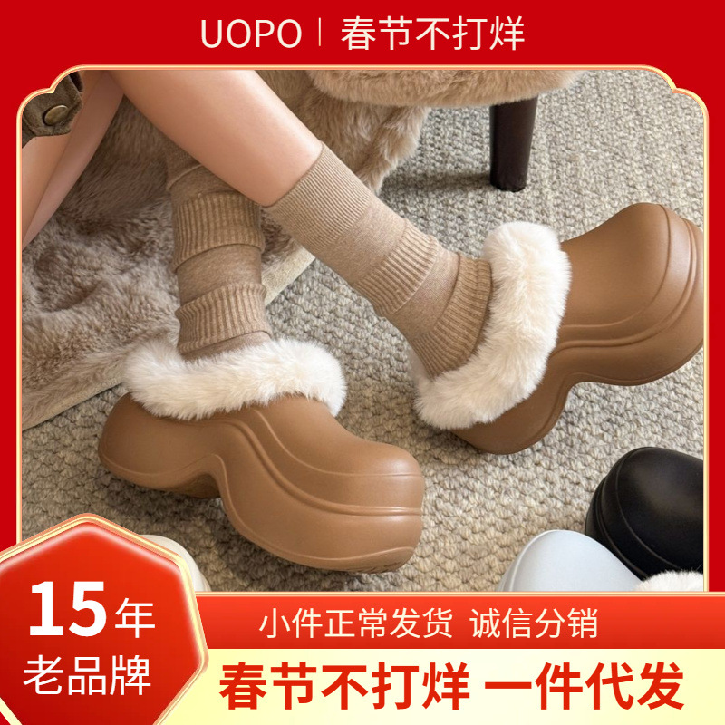 增高跟防水棉拖鞋女士冬季2025新款厚底包跟防滑外穿毛毛绒棉鞋女