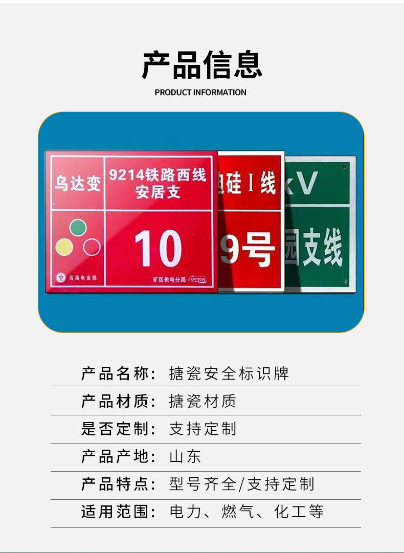 安全标识牌搪瓷牌pvc警示牌定制电力工程市政通信电缆光缆杆号牌