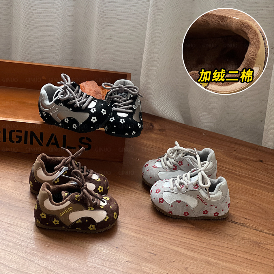 {16-30ヤード} 女の子とベルベットのカジュアルな板靴2024冬の子供二綿スポーツシューズの赤ちゃんの靴