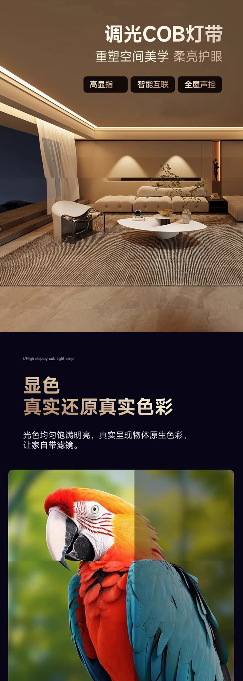 无极调光cob灯带24V变色客厅双眼皮线型灯带 楼梯cob感应双色灯带