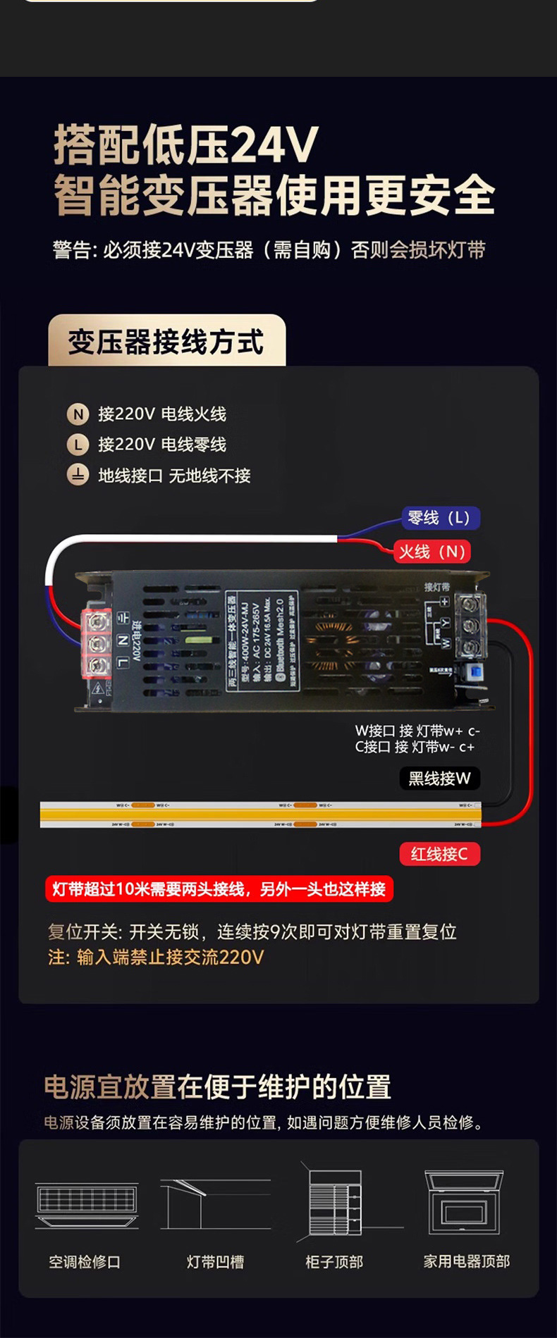 灯带电源双色智能调光电源 24v无极调光控制器超薄静音变压驱动器