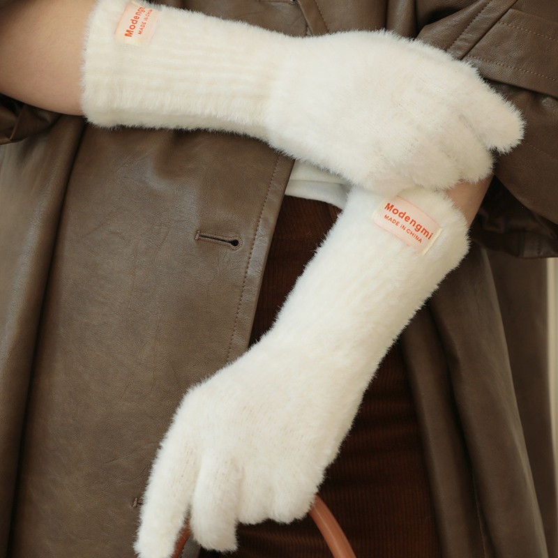 柔らかくて毛がふわふわしていて、保温手袋を長くしています。