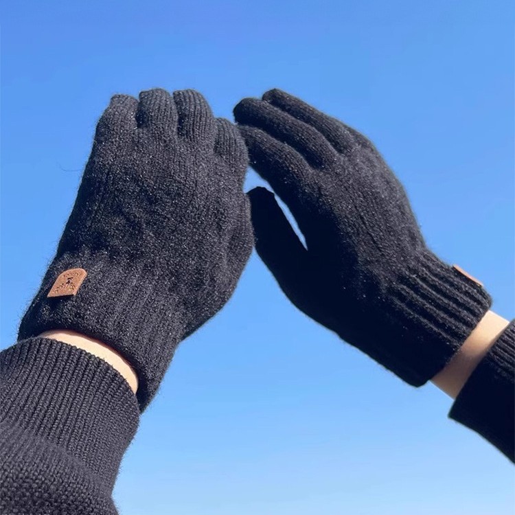 可触屏棉手套男士冬季保暖加绒加厚毛线针织骑行男女同款防寒手套